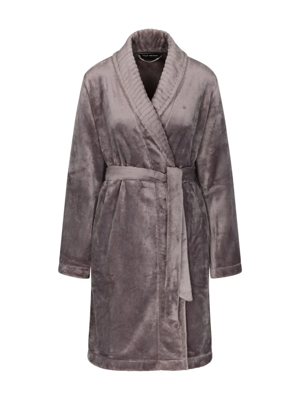 Polyester winter robe. Side pockets & tie-belt. Fluffy fleeced ribbed collar. Machinewasbaar. 100% katoen. Waarschuwing: weg houden bij vuur en vlammen.