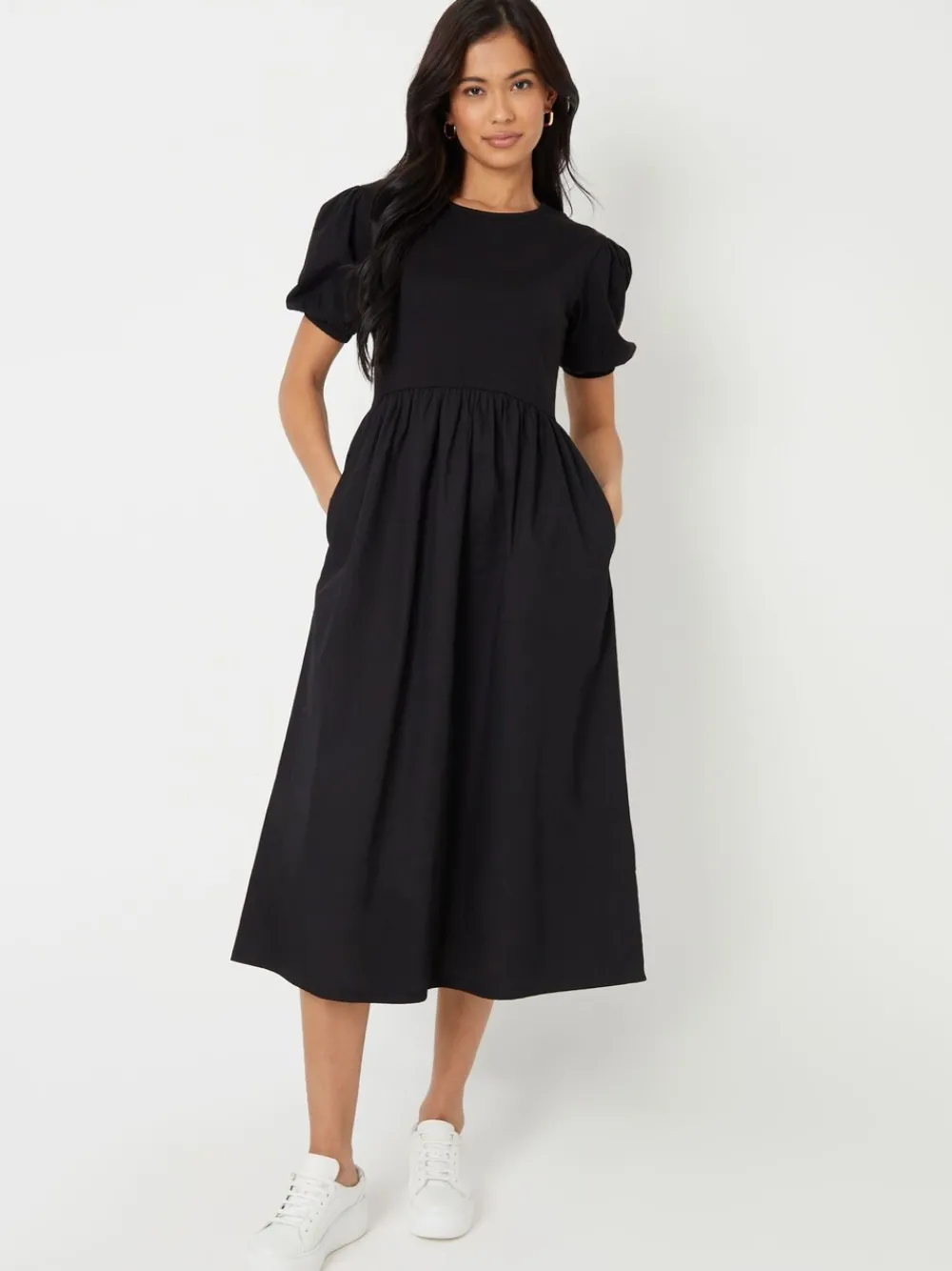 Ontdek moeiteloze elegantie met deze 2-in-1 maxi-jurk met pofmouwen van Threadbare. Deze maxi-jurk met ronde hals en korte pofmouwen heeft een bovenlijf van jersey, een contrasterende poplin-rok die in de taille plooit voor volume en twee handige zijzakken, waardoor dit zowel een praktisch als stijlvol kledingstuk is. Ideaal voor elke gelegenheid. Combineer met sneakers voor een casual uitje of met hakken en accessoires voor een verfijnde avondlook. Het model draagt maat 8(Verenigd Koninkrijk). Machinewasbaar. 100% katoen.