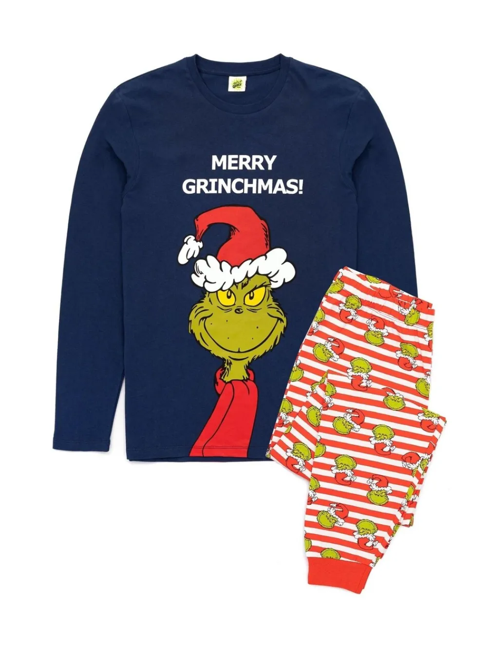 – 100% katoenen The Grinch Unisex pyjama met lange mouwen, lange pijpen en Merry Grinchmas-kerstslogan*Vanilla Underground Sale