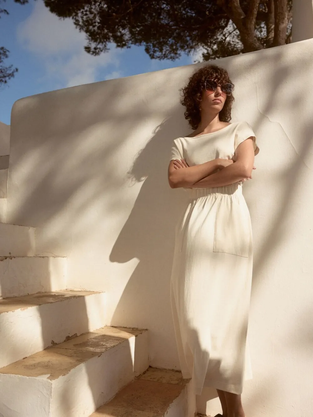 Deze chic-casual 100% crèmekleurige jurk heeft een T-shirtvormig lijfje met korte kapmouwen, een ronde kraag, een elastische, geplooide taille en opgestikte zakken in utility-stijl, afgewerkt met een midi-rok. Regular fit T-shirt lijfje 100% katoen Ronde kraag Opgestikte zakken Elastische tailleband Machinewasbaar. 100% katoen. Artikelen met het curve-logo zijn verkrijgbaar in de maten 18 en groter. Onze tall collectie is ontworpen om te passen bij vrouwen van 5’10” en langer. Dit is verhoudingsgewijs vergroot door het lichaam, de benen en de mouwen om de perfecte pasvorm te bereiken. Verkrijgbaar in maat 8-20.