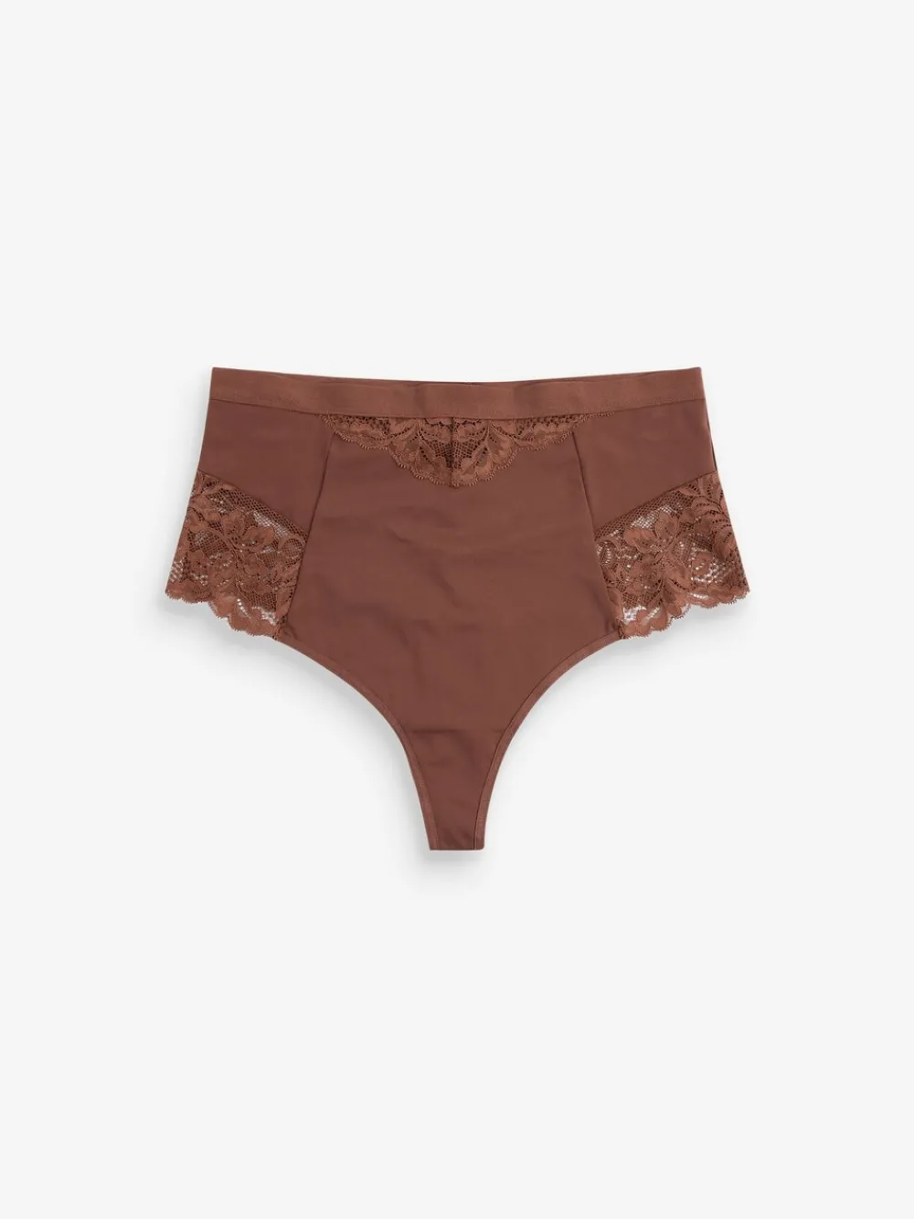 Deze set van twee chocoladebruine corrigerende strings heeft een hoge taille voor een comfortabele en flatterende pasvorm onder elke outfit. Met zacht kant voor een extra vrouwelijk detail. Machinewasbaar. 2 x slipjes van 68% nylon, 32% elastaan. Artikelen met het curve-logo zijn verkrijgbaar in de maten 18 en groter.