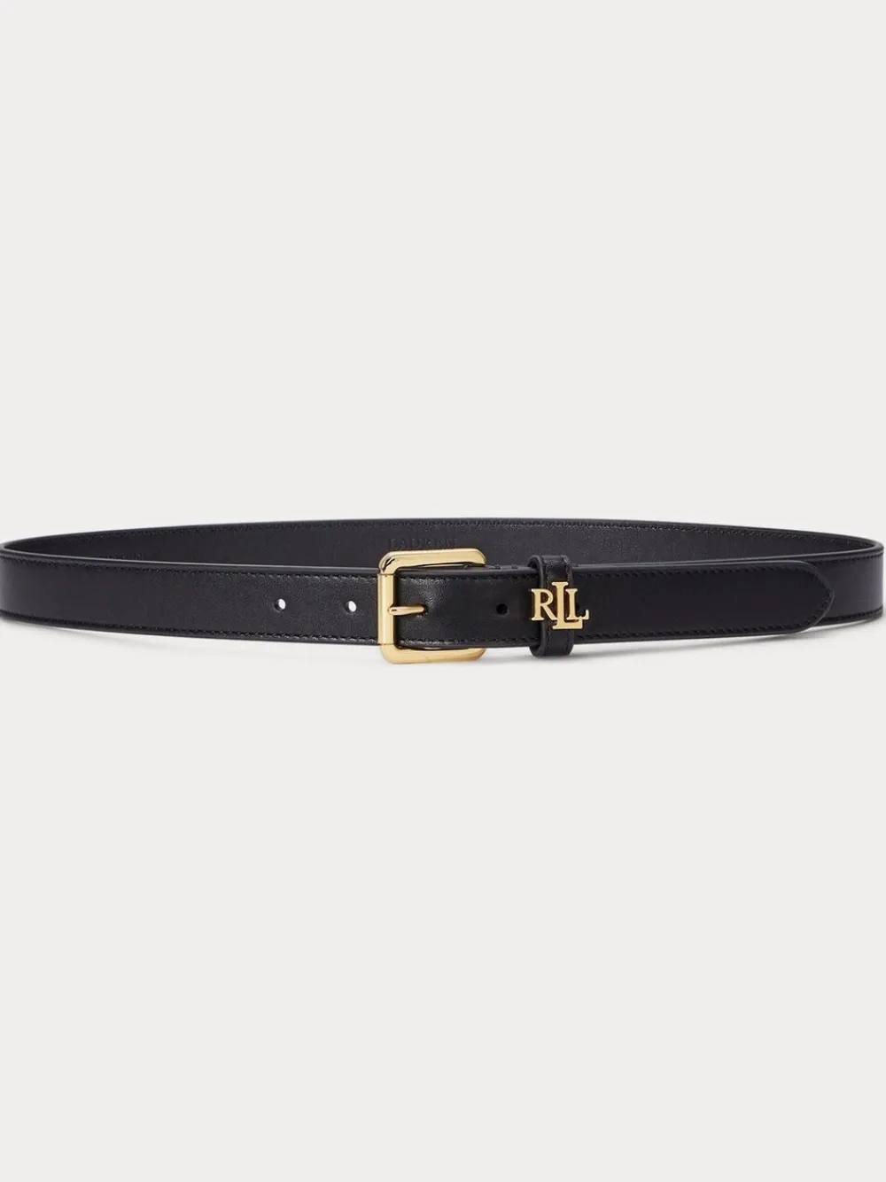– 2,5cm Omkeerbare kiezelkleurige leren riem met logo*Lauren Ralph Lauren Clearance