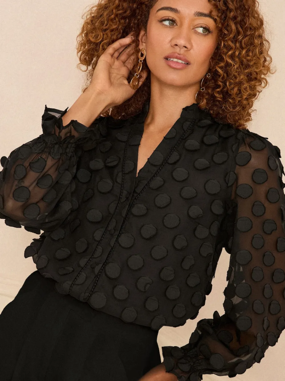 – 3D blouse met lange mouwen en stippen*Love & Roses