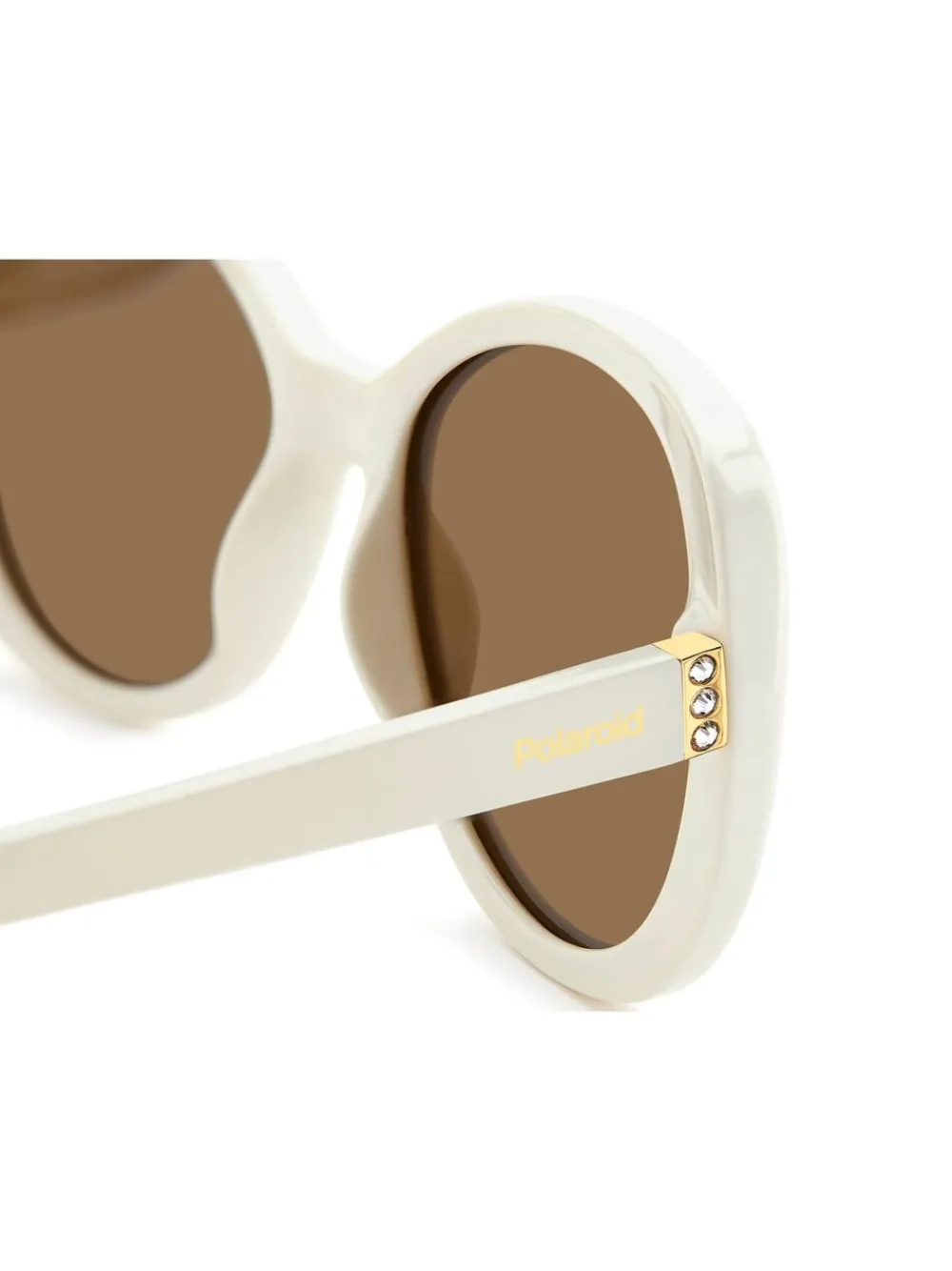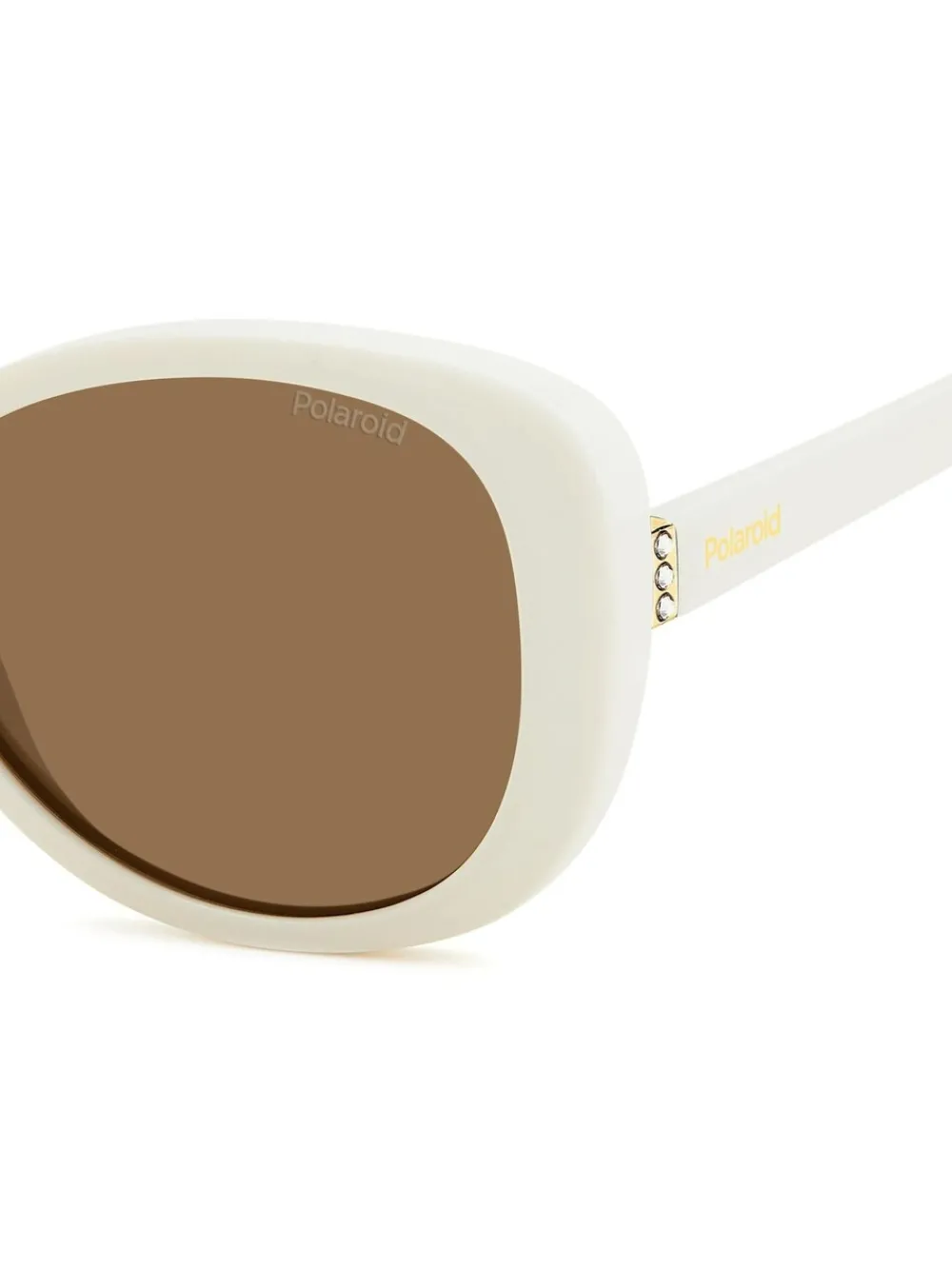 Polaroid’s most essential eyewear collection is anything but ordinary, and these women’s wide butterfly sunglasses are proof. They shade the eyes thanks to polarised lenses (prescription optional), held up by a polycarbonate structure in a classic colour palette. The slender temples are enriched by rhinestones, a printed logo and a contrast detail on the end tips. Lens Treatment: Solidtint UV Transp(%): 0.02 UV380-400: 400 UV Protection: 100 Polarised: Yes 100% acetaat.