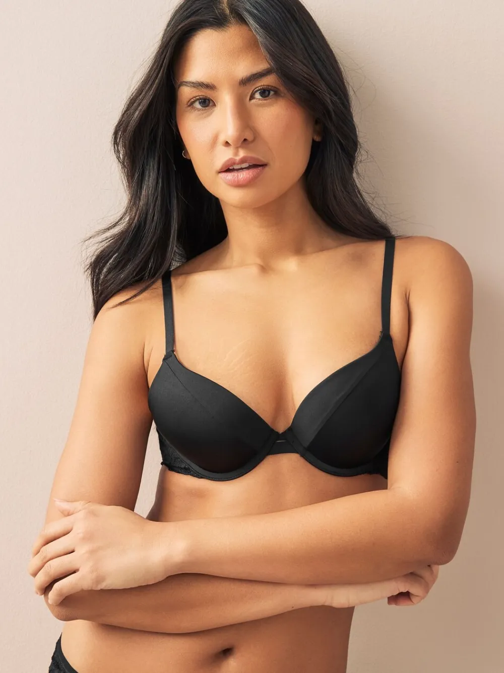 Voeg een beetje zelfvertrouwen toe aan je dagelijkse Lingeriecollectie met onze twee-pack push-up plunge bh. Ideaal voor lage halslijnen en voor alledaagse tanktops en T-shirts in zwart/wit. De ondersteunende cups en diepe halslijn zorgen voor een comfortabele lift, terwijl het prachtige kantdetail vrouwelijke elegantie toevoegt. Push-up T-shirt beha’s 2-pack Diepe hals Kanten detail Machinewasbaar. 2 x beha van 65% nylon, 23% polyester, 12% elastaan. **Klik hier om de NIEUWE calculator voor de behamaat te gebruiken** CoppaFeel! is de enige op jongeren gerichte borstkankerbewustzijnsorganisatie in het VK met als missie om elke jongere zijn of haar borst te laten controleren. Next is er trots op hun bra-hijackcampagne te steunen.