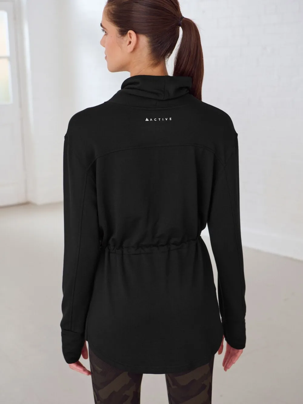 De perfecte laag voor buitenactiviteiten of om over je sportoutfit te stylen voor en na het sporten. Onze actieve sweater met col is gemaakt van een zachte stof met een verstelbare taille met trekkoord voor een flatterende pasvorm en een col voor extra warmte. Verstelbare taille Zachte stof Watervalhals Machinewasbaar. 68% viscose, 29% polyester, 3% elastaan.