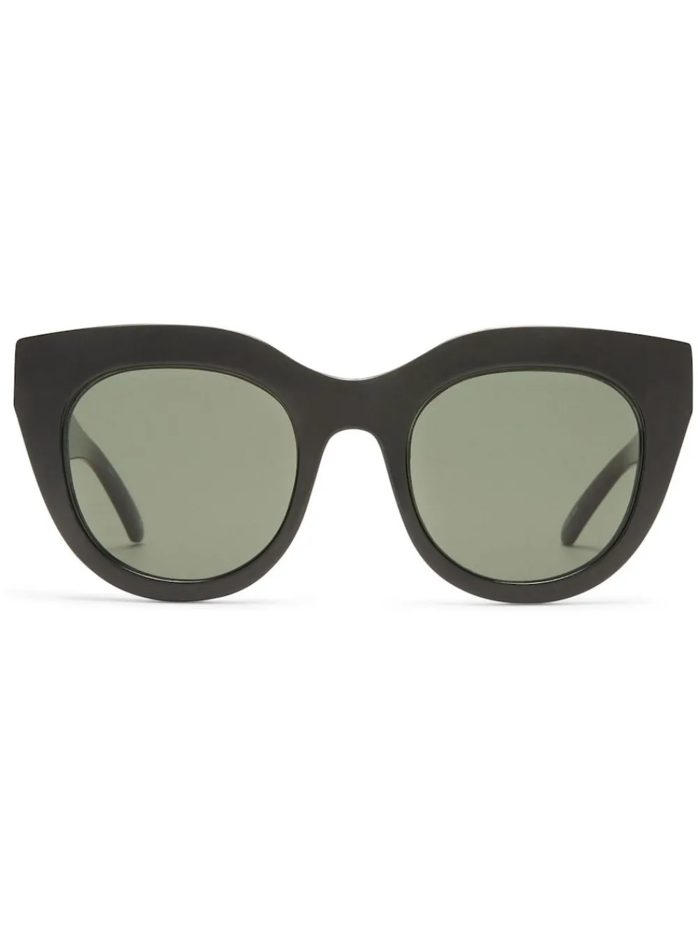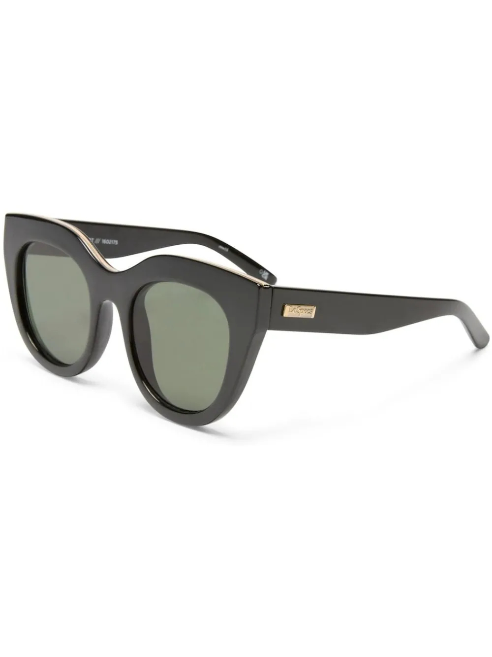 A favourite of Meghan Markle and Olivia Palermo the AIR HEART silhouette is an iconic Le Specs style. With oversized and dramatic proportions reminiscent of a cat eye the style is designed with a thick semi-translucent tan frame and luxurious metal top bar inlay then fitted with premium zero base smoke flat lenses. The perfect statement sunglass to suit all face shapes. Finished in a black and gold frame with khaki mono lenses. Made using plastic which is lightweight durable and impact resistant.Fitted with shatterproof and scratch resistant polycarbonate lenses. Filter Category : Category 3 UV/UVB 100% Polarised: N 100% andere vezels.