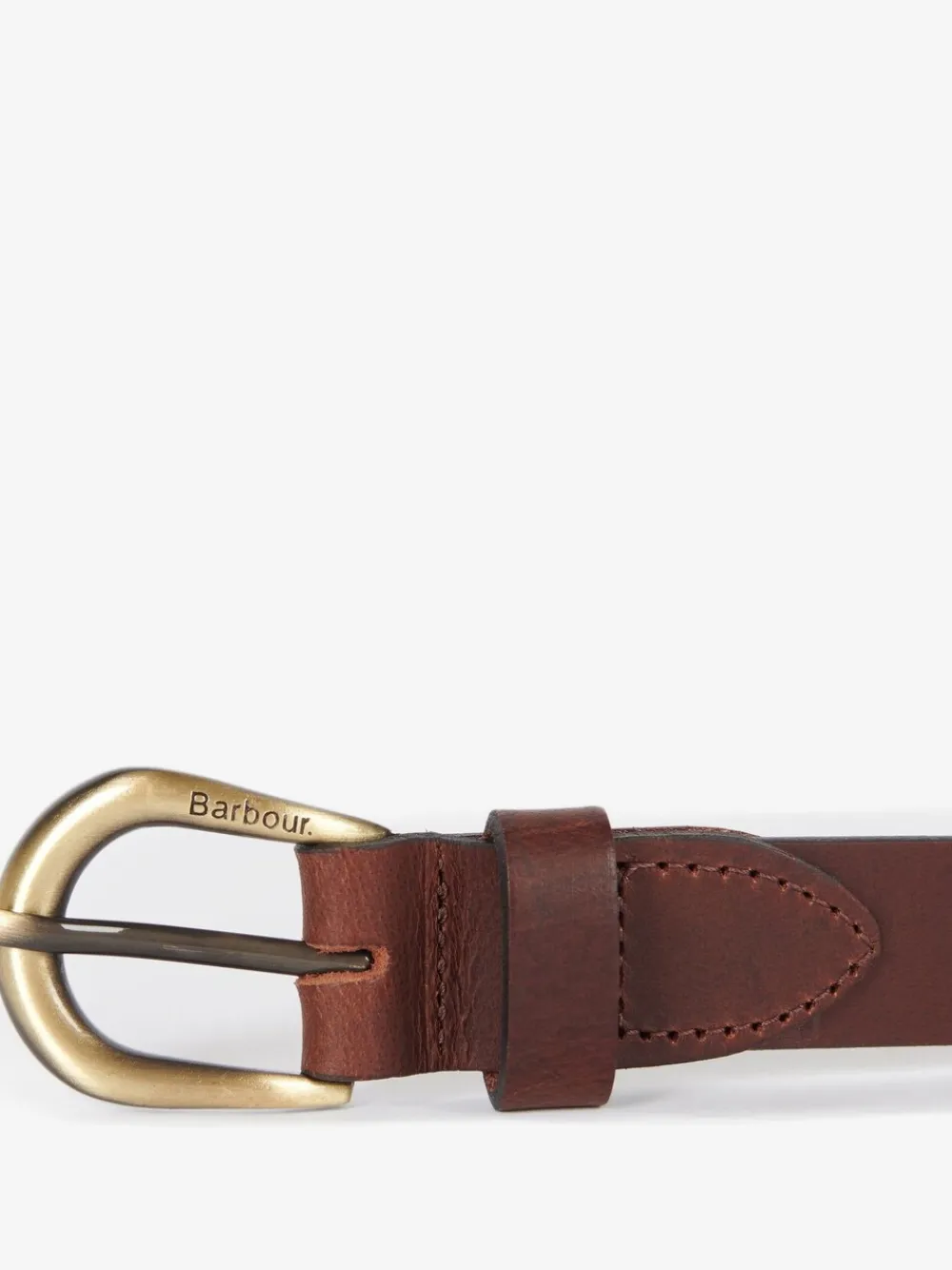 Crafted from 100% leather, this ladies’ belt is a timeless choice when it comes to completing outfits. It features an aged brass-effect buckle with an engraved logo, as well as an embossed logo to the tip of the belt. 100% leer.