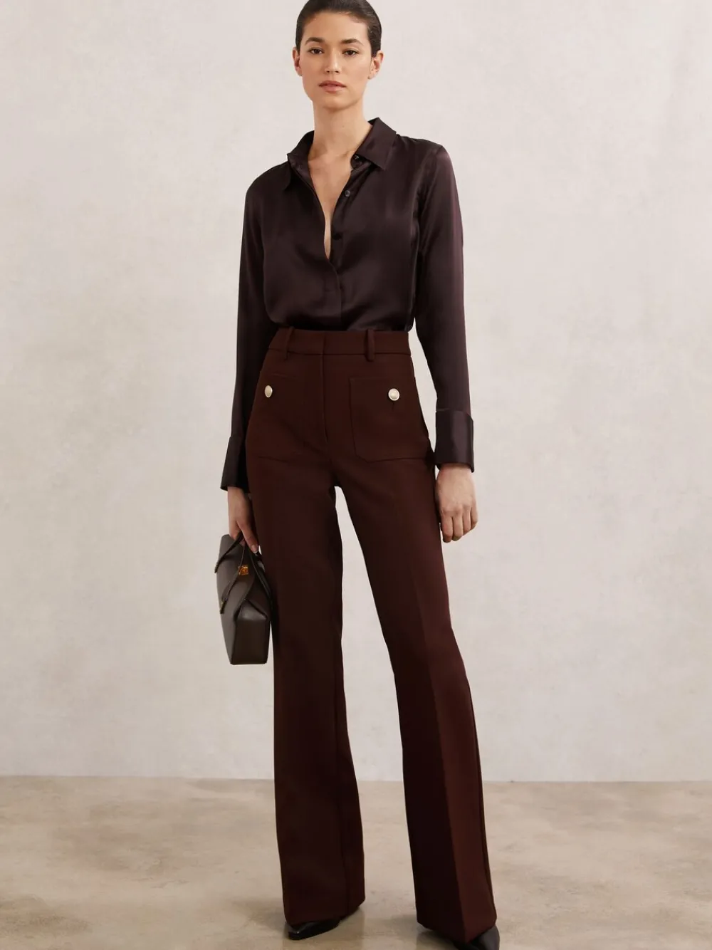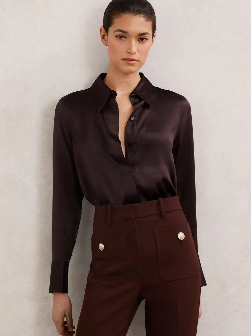 – Ameira Silk-Satin Concealed-Placket Shirt*Reiss Sale