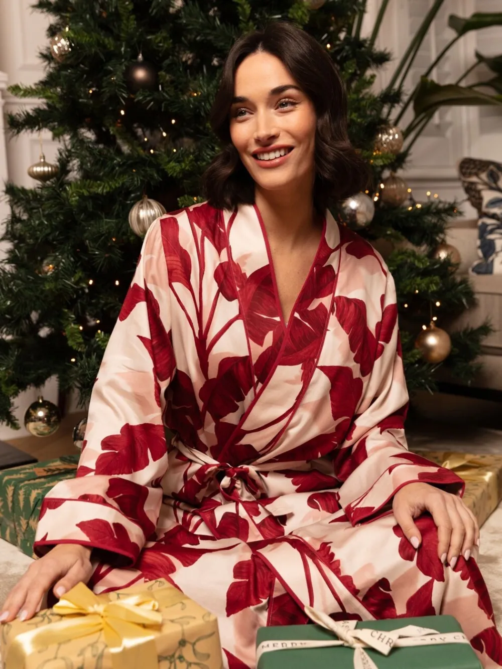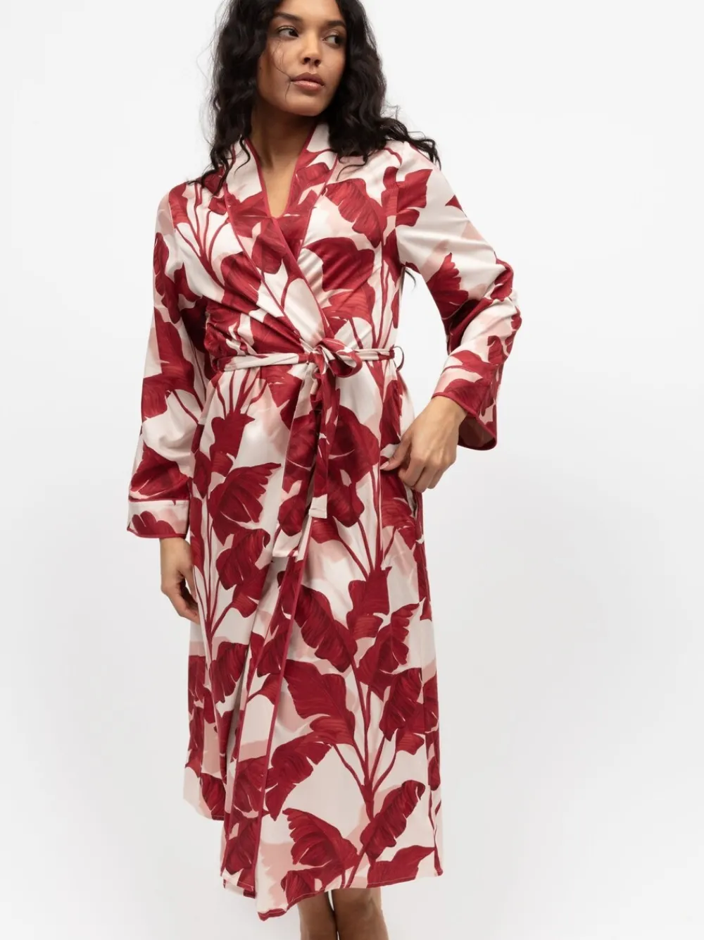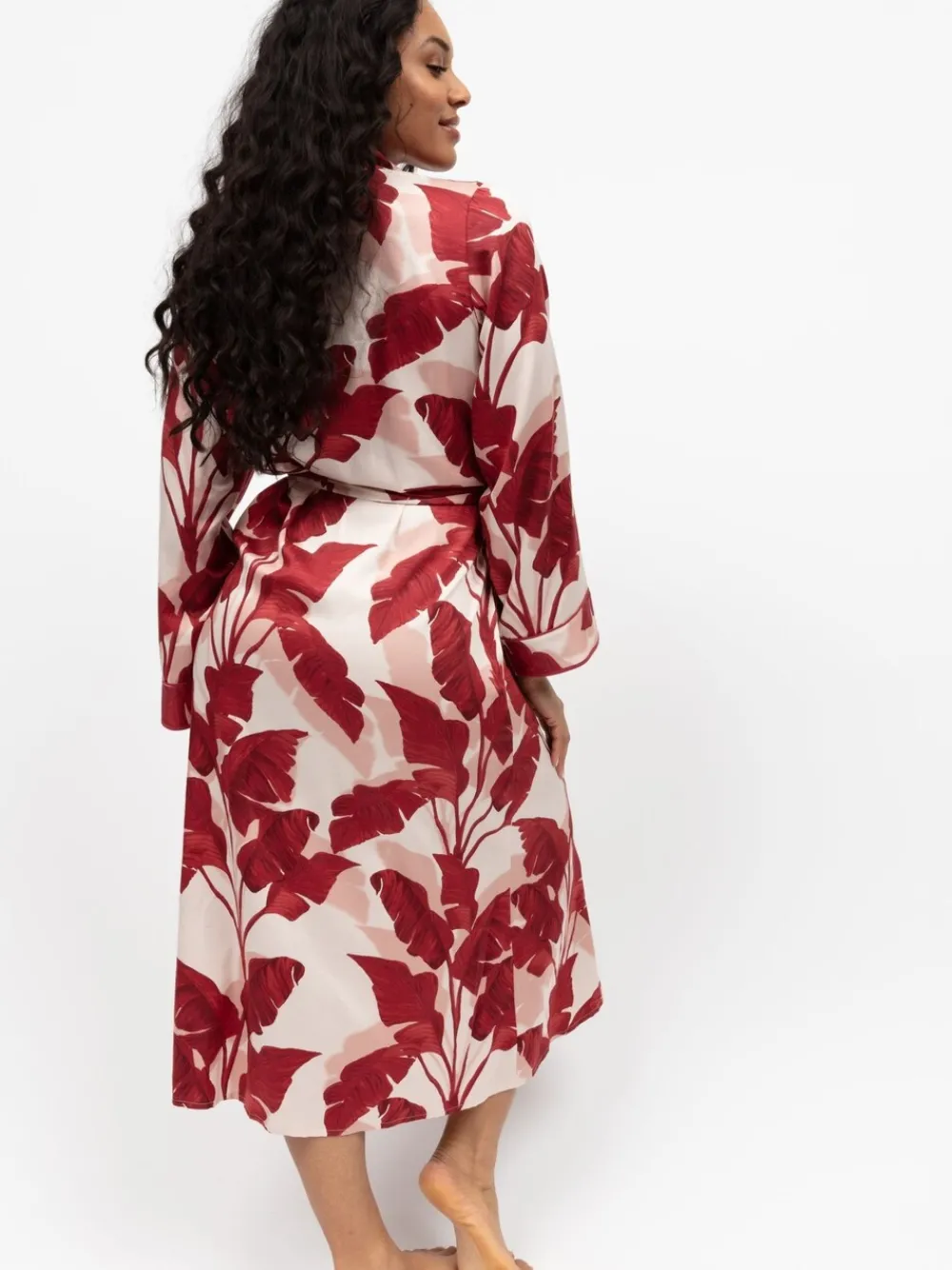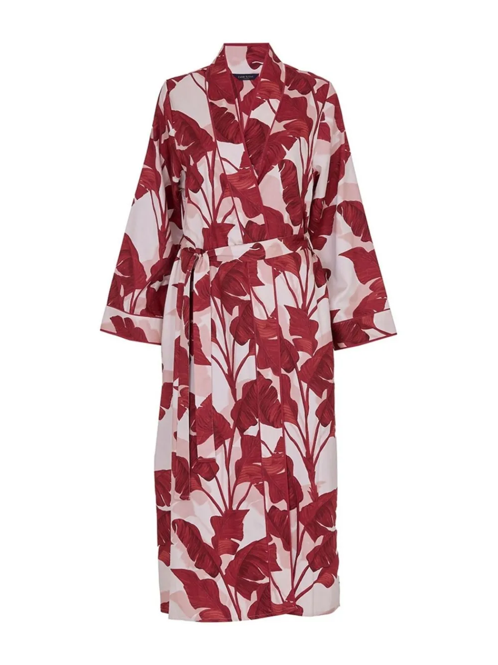 Whether you spend them unwinding with a book or cuddling with your partner, find yourself relaxing in comfort and style evening after evening with our Fable and Eve long sleeved dressing gown. The dressing gown is built from a blend of 68% modal and 32% cotton for the utmost comfort and a gorgeous sheen. Made in a classic kimono style, this gown creates a flattering and chic silhouette with its cuffed long sleeves, self fabric belt and folded bottom hem. Machinewasbaar. 68% Modaal, 32% katoen. Waarschuwing: weg houden bij vuur en vlammen.