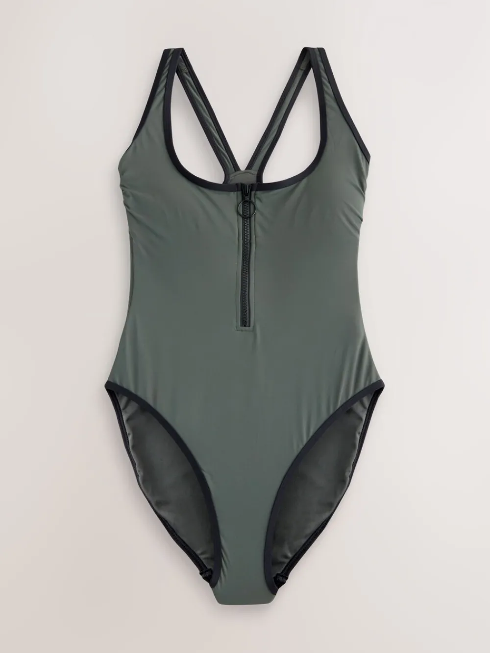 With an SPF rating of 50+ on covered areas, this gorgeous khaki green swimsuit has a contrast binding with a zippered fastening to the chest with a scoop neck and high-cut legs, featuring tummy control mesh for a smooth shape. This non-wired style is also suitable for customers who have had a mastectomy as it also features removable pads and wide pockets at the chest which can discreetly accommodate your prostheses. SPF rating of 50+ Zip fastening to the chest Scoop neck High cut legs Tummy control mesh Hoofdbestanddeel 85% nylon, 15% LYCRA® XTRA LIFE™ elastaan. Voering 92% gerecycled polyester, 8% elastaan. Mesh 88% nylon, 12% elastaan. Artikelen met het curve-logo zijn verkrijgbaar in de maten 18 en groter. LYCRA® XTRA LIFE™-vezel zorgt ervoor dat je ondergoed er langer als nieuw uitziet, met langdurig comfort en pasvorm. Dit innovatieve stretchmateriaal weegt weinig, ademt en behoudt zijn vorm bij telkens weer dragen en wassen. Deze stof voldoet aan BS EN 13758. – 1, zorgt voor bescherming tegen ultraviolette zonnestraling. Het is onafhankelijk getest en heeft een UPF-classificatie van 50+ gekregen, wat meer dan 97,5% van de UV-stralen blokkeert. Belangrijk advies: • Blootstelling aan de zon veroorzaakt huidbeschadiging • Alleen bedekte gebieden zijn beschermd • Gebruik altijd een zonnebrandcrème met een hoge beschermingsfactor voor gebieden van de huid die bloot worden gesteld aan de zon • De bescherming van deze stof kan worden verminderd bij gebruik of als het uitgerekt of nat is • Spoel altijd na elk gebruik af met zoet water • De stof biedt UVA- en UVB-bescherming tegen de zon.