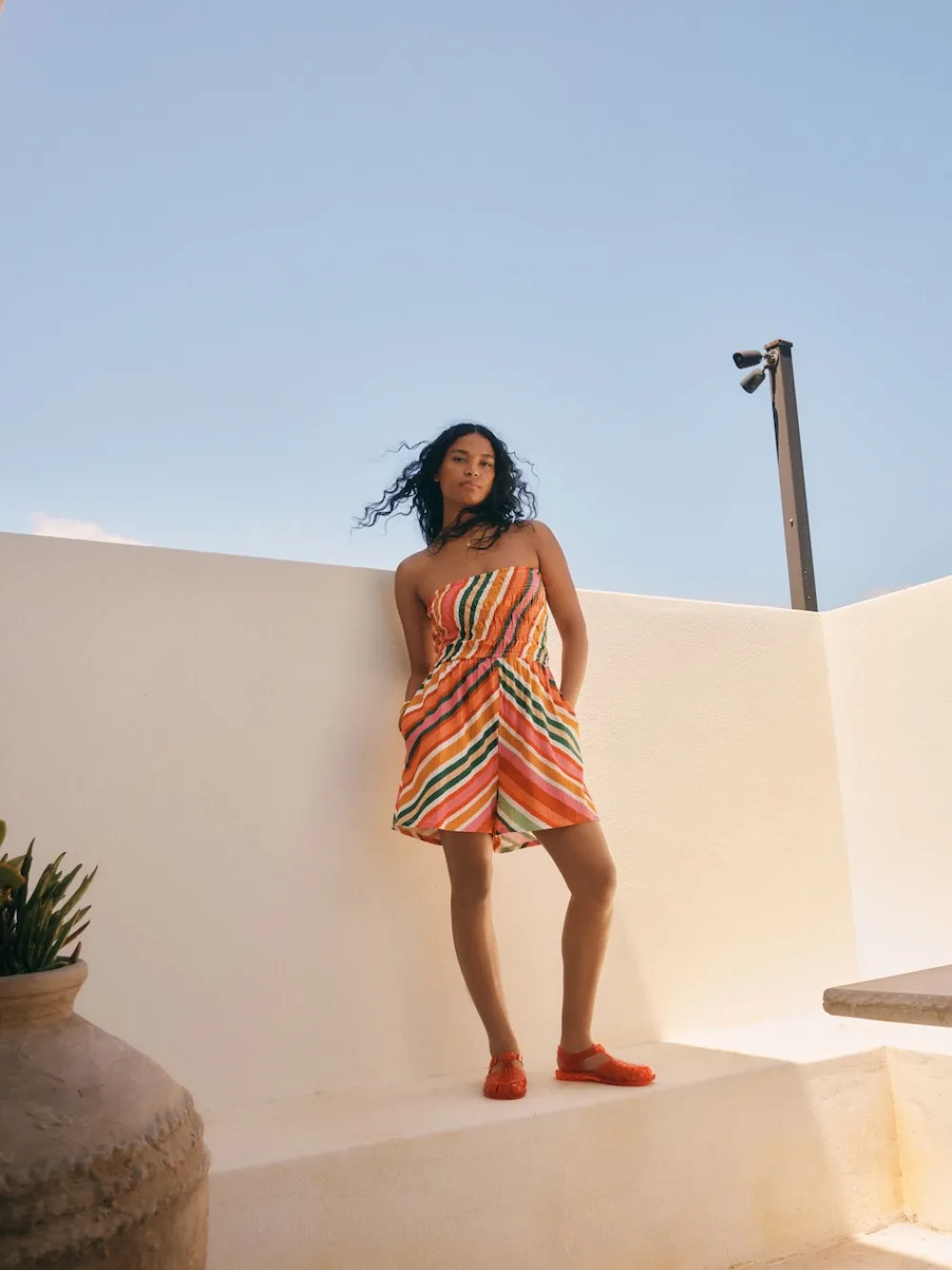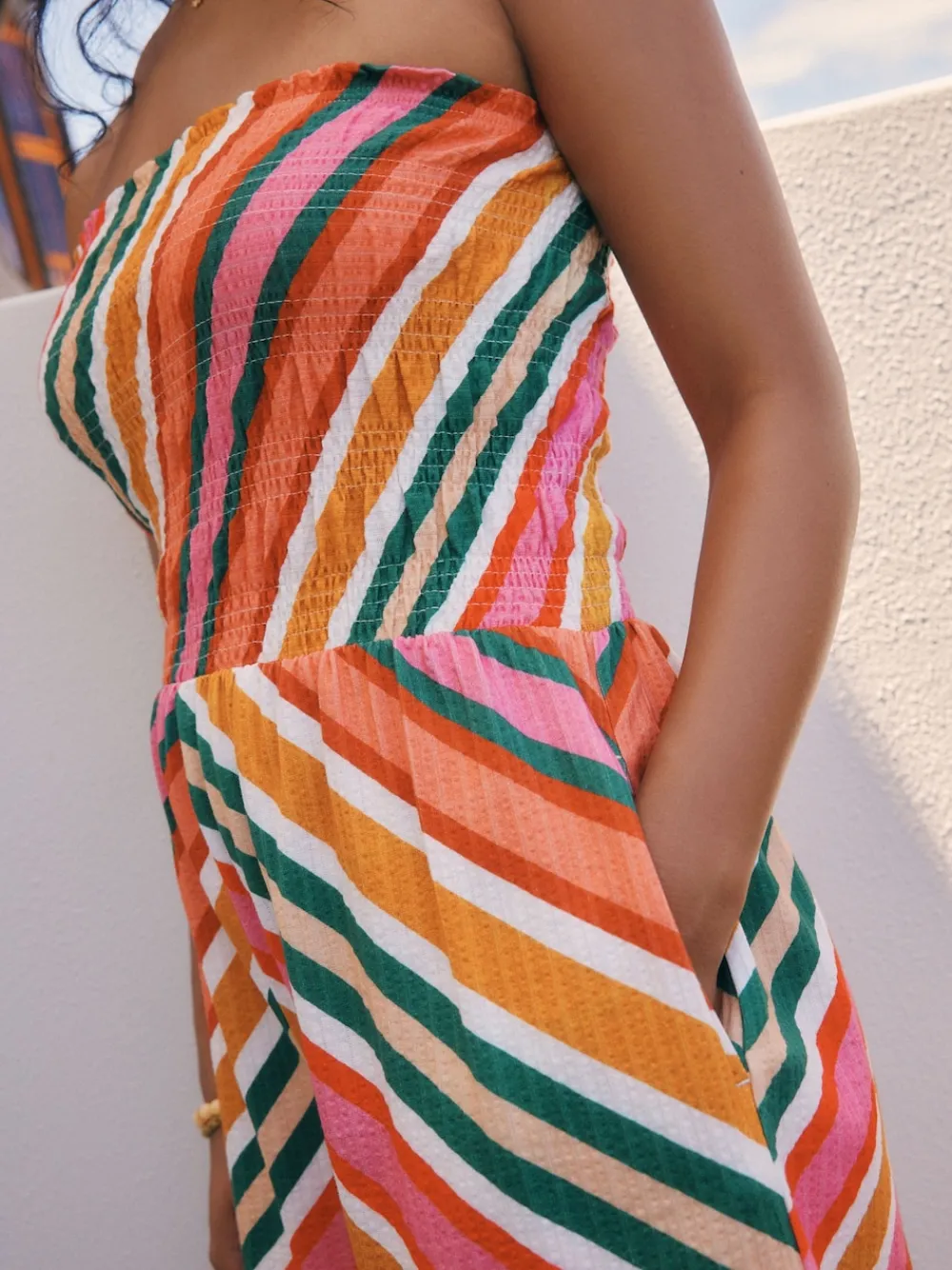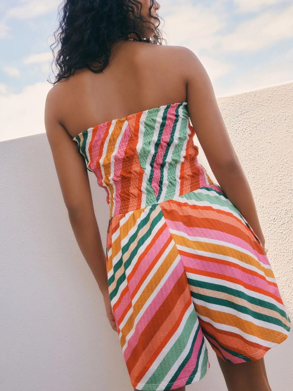 The perfect piece to take away with you on holidays to sunnier climes, our bandeau playsuit blends comfort and style with ease.Made from soft cotton with a seersucker textured finish, this breathable strapless piece also has a stretchy shirred detail on the bodice for the perfect fit. Just add sandals and sunglasses to complete your look. Bandeau design Fabric is polycotton Shirred detail Seersucker texture Machinewasbaar. 100% katoen. Artikelen met het curve-logo zijn verkrijgbaar in de maten 18 en groter. Onze tall collectie is ontworpen om te passen bij vrouwen van 5’10” en langer. Dit is verhoudingsgewijs vergroot door het lichaam, de benen en de mouwen om de perfecte pasvorm te bereiken. Verkrijgbaar in maat 8-20.