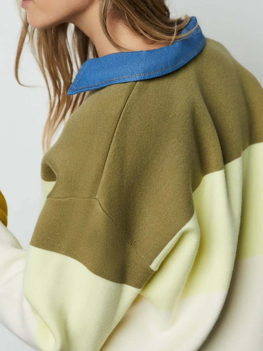 | Color | Groene gestreepte denimkraag |