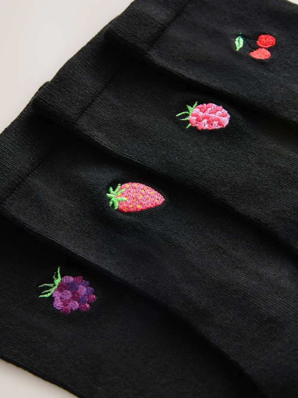 Bessen – Set van 4 paar enkelsokken met geborduurd motief*Next Best
