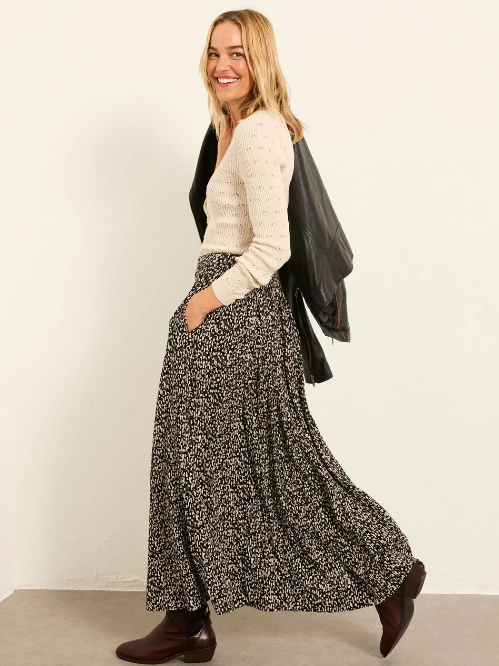 The Issa midi skirt drapes beautifully for a flattering, flowy fit that moves with you. Crafted from lightweight, breathable fabric it’s easy to dress up or down, it’s perfect with a tucked-in tee and trainers for daytime, or a soft knit and boots when the temperature dips. Effortless, versatile, and ready for wherever the day takes you. Standaard van tailleband tot zoom 34,5″ / 88 cm. Machinewasbaar. 100% LENZING™ ECOVERO™-viscose.