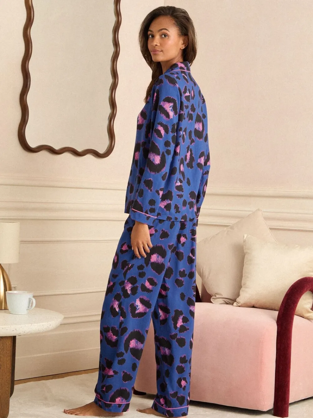 Blauw met luipaardprint – Button Down Pyjamas Set*Love & Roses New