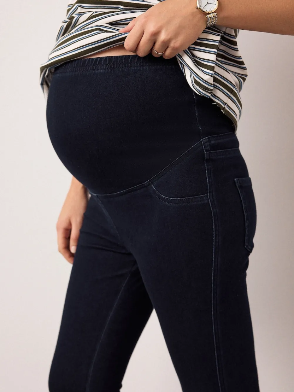 A must-have pregnancy staple, this 2 pack of maternity denim jeggings provides ultimate comfort and versatility. Featuring a flattering skinny leg profile and supportive over-bump construction, these jeggings offer the look of jeans with the softness of leggings, perfect for everyday wear. Skinny leg shape Over-bump construction Denim jegging style Soft and comfortable Two pack Black and blue colours Regular voor binnenbeenlengte 29″ / 74 cm. Jeans Dark Wash 61% Cotton, 28% Recycled polyester, 11% Elastane. Jeans Black 55% Cotton, 29% Recycled polyester, 16% Elastane.