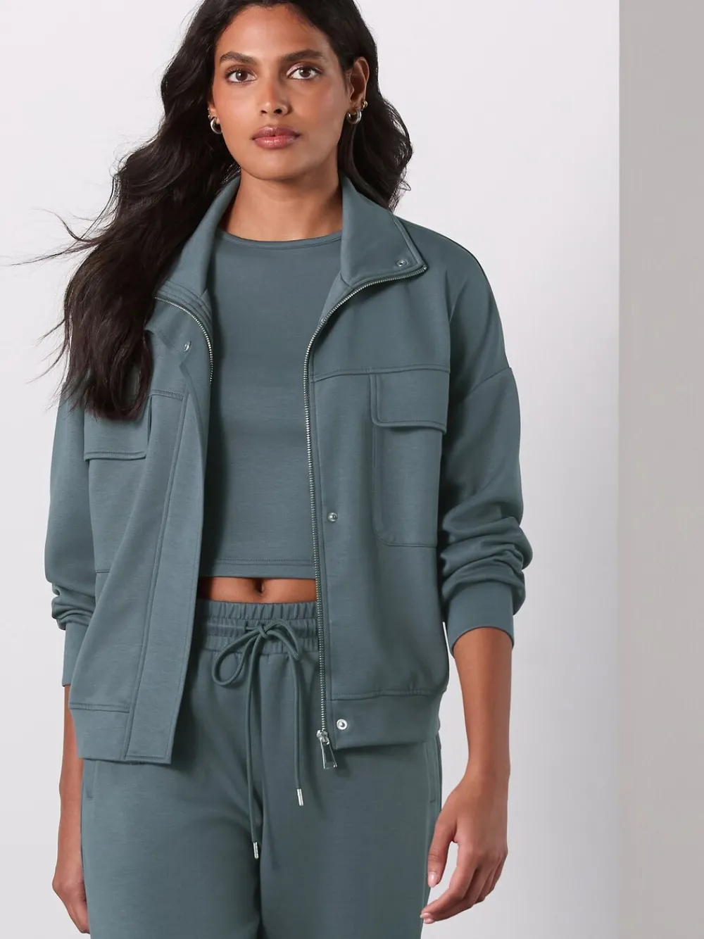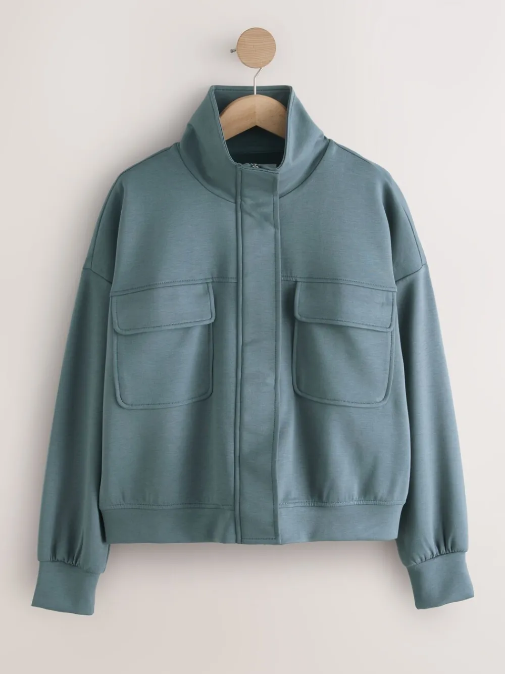 Embrace the co-ord trend with this effortlessly cool funnel neck bomber jacket. Crafted from a supersoft fabric, its utilitarian style is defined by deep patch pockets and a secure popper front. Pair it with the matching vest and wide-leg trousers for the ultimate coordinated day-to-night look. Funnel neck Utilitarian style Popper front fastening Deep patch pockets Machinewasbaar. 47% LENZING™ ECOVERO™ viscose, 41% gerecycled polyester, 12% elastaan.