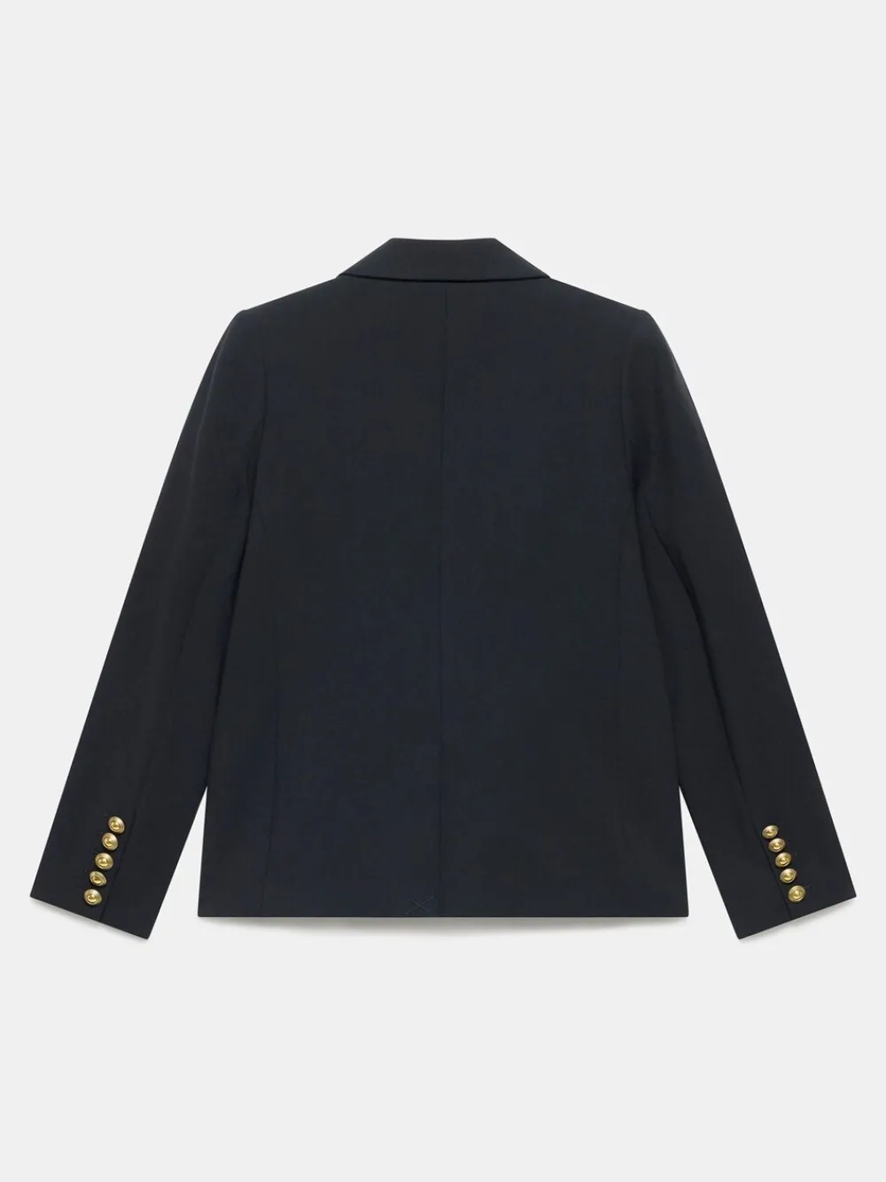 Black blazer in a double breasted silhouette with peaked lapels, long sleeves, buttoned cuffs, welt pockets, with gold-tone military-inspired buttons in a single fastening through the front. Fully lined. Alleen chemisch reinigen. Buitenkant 66% polyester, 29% viscose, 5% elastaan. Voering 95% polyester, 5% elastaan.