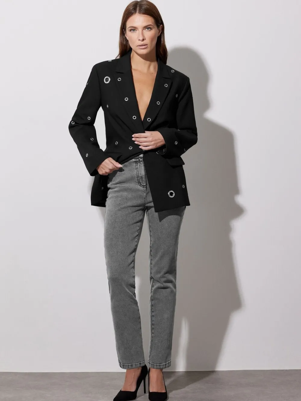 Style Notes: Add a contemporary touch to your wardrobe this season with our new-in blazer. Crafted from a comfortable woven fabric, it features eyelet detailing, two front pockets, and long sleeves. Style this piece with trousers and heels for a refined, tailored look. Features: Star by Julien Macdonald Eyelet detail Two front pockets Long sleeves Crafted from a comfortable woven fabric 72 polyester, 22 viscose, 6 elastane Lining: 100 polyester Length from approx: 73.5cm/28.9 Machine washable Model is 5ft 7/170cm and size UK 10/EU 38. Machinewasbaar. Buitenkant 72% polyester, 22% viscose, 6% elastaan. Voering 100% polyester.