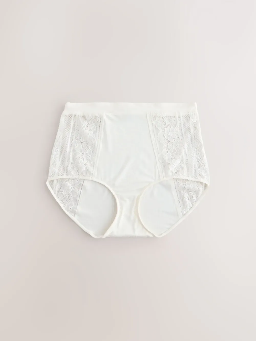 Upgrade your everyday essentials with this luxurious three pack of full brief knickers. Crafted from a super soft fabric, these knickers feature delicate lace inserts for a feminine finish. Pack of three Full brief style Lace design Machinewasbaar. 3 x slipjes Hoofdzakelijk 57% Modal, 35% nylon, 8% elastaan. Inzetstuk 100% katoen. Artikelen met het curve-logo zijn verkrijgbaar in de maten 18 en groter.