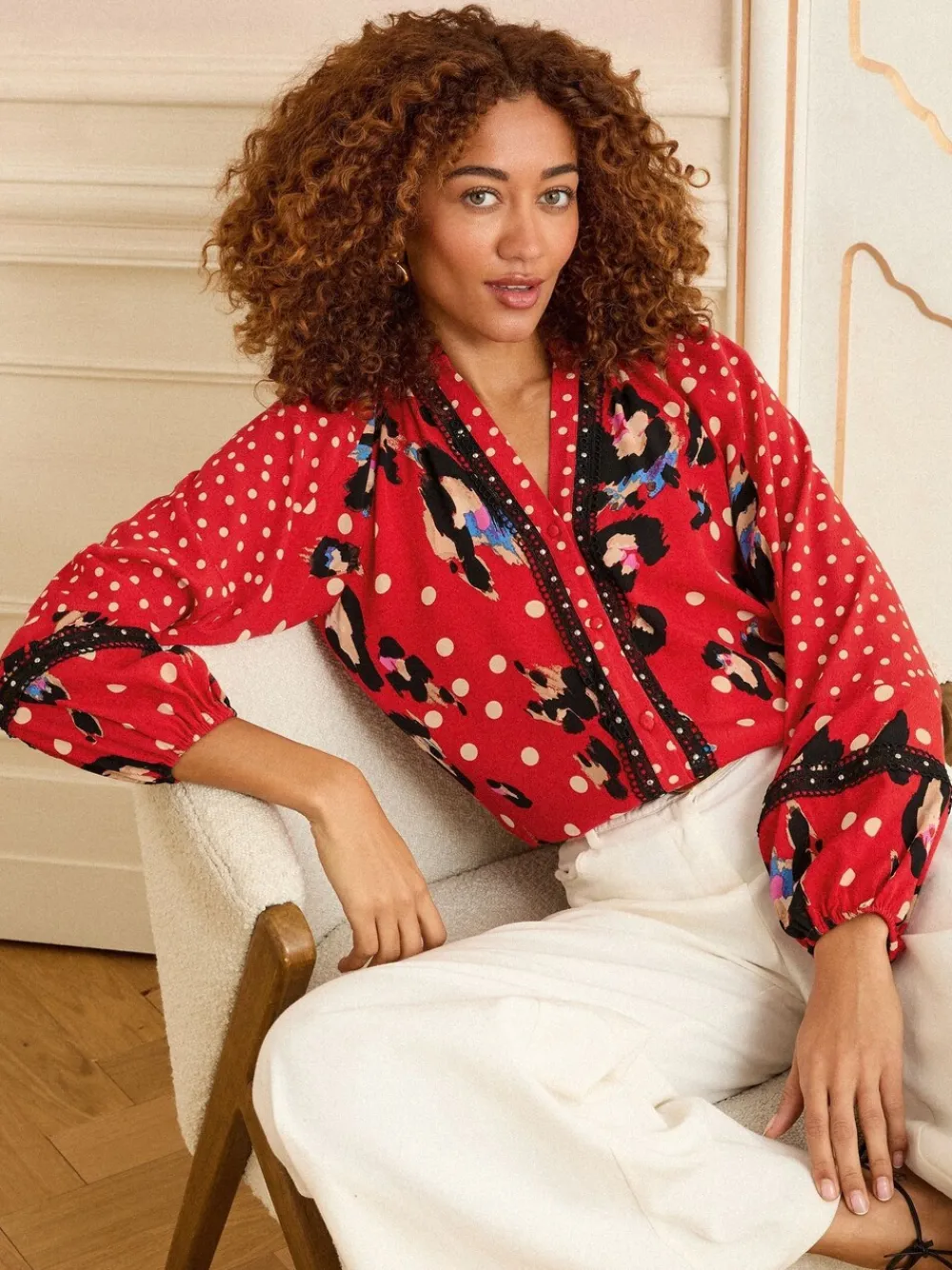 blouse met lange mouwen en inkeping*Love & Roses Sale