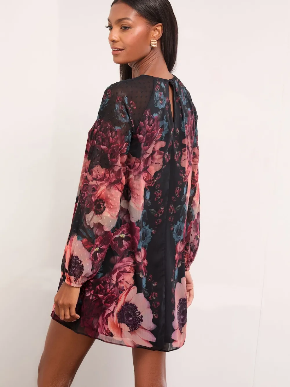 Featuring lace insert shoulders, long sleeve, mini length. Model is 5’10 and wears a size 8. Hoofdbestanddeel 100% polyester. Voering 100% polyester.
