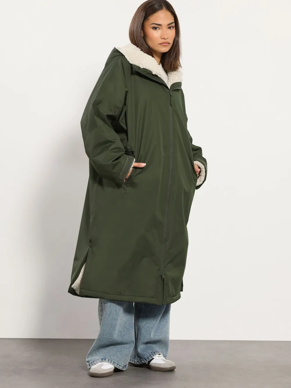 Fit & Fashion Notes:Keep out the cold with our must-have lined robe. Made from a durable woven fabric, it features a waterproof and wind resistant design, a fluffy fleece lining and is complete in a hooded style. Perfect as an everyday layer or for those fresher mornings at the beach!Features: Waterproof design, Wind resistant, Taped seams to enhance waterproof protection, Fleece lined, Hooded style, Long sleeves, Zip fastening, Two front pockets, Concealed side pocket, Made from a durable woven fabric, 100 polyester, Length from approx: 100cm/39.3, Machine washable, Small fits sizes: 6, 8, Medium fits sizes: 10, 12, 14, Large fits sizes: 16, 18Model is 5’1 / 155 cm and size UK 6 / EU 34 Machinewasbaar. 100% polyester. Waarschuwing: weg houden bij vuur en vlammen.