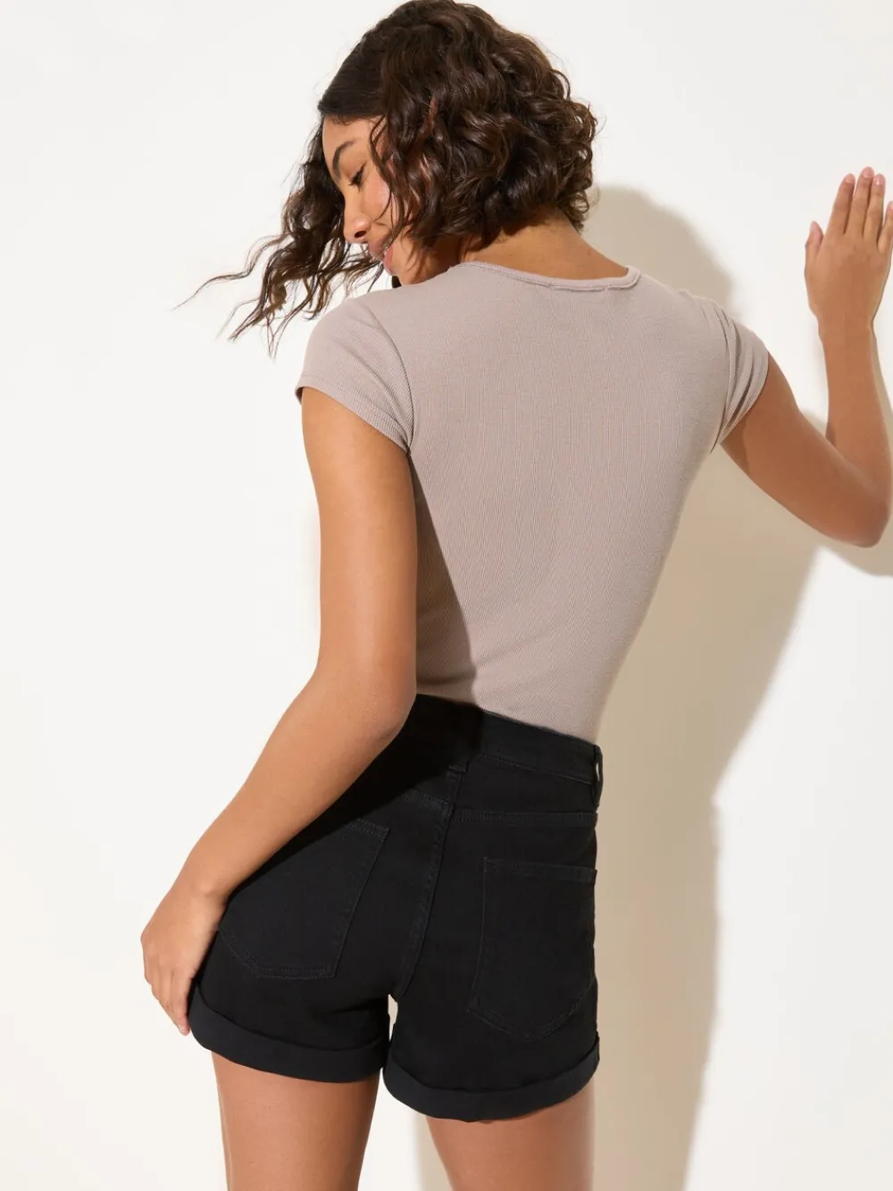 The boyfriend style shorts with a relaxed fit leg and mid-rise waist. This day to day shorts have a functional zip, pockets and buttons. These are perfect to wear on the go and paired with your favourite trainers. Model wears a size 8 Wearing length – 8,5 cm 99% Katoen, 1% elastaan.