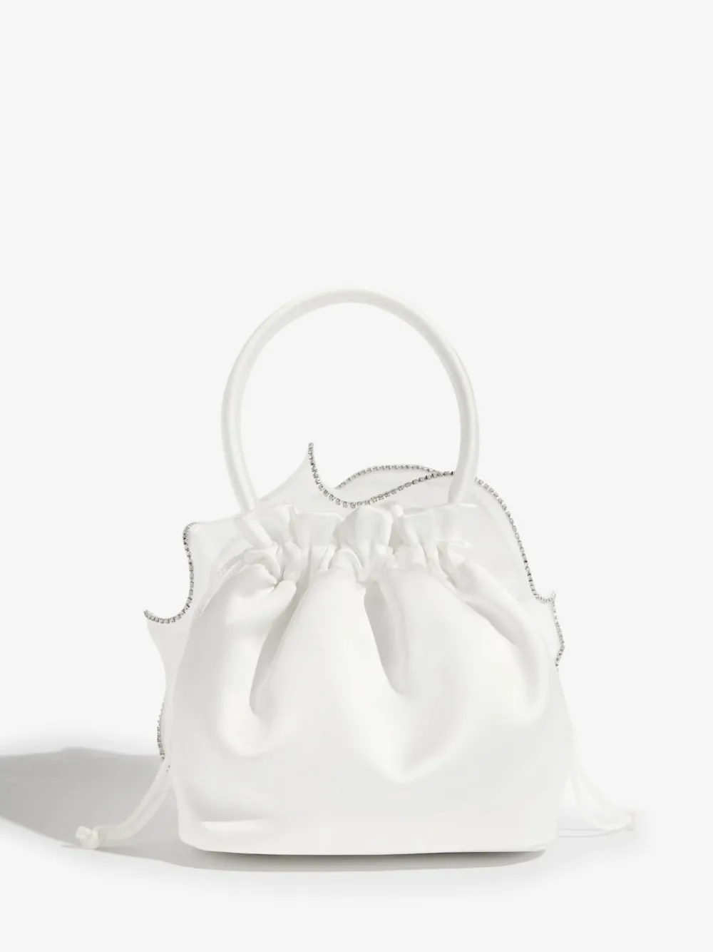Make a stunning statement on your special day with this Lipsy Ivory Bridal Embellished Rose Top Handle Bag. Crafted from elegant satin-like fabric, this drawstring bucket bag is shaped like a beautiful rose with delicate diamante embellishment. Perfect for weddings or bachelorette parties, it features a fixed top handle and a hidden inside chain strap for versatility. Elegant satin-like fabric Unique rose-shaped design Features diamante embellishment Drawstring bucket style Inside chain strap included Best for bridal and special occasions Hoogte 17 cm Breedte 17,5 cm Diepte 11 cm Hoofdmateriaal 100% polyester. Voering 100% polyester. Bies 100% polyester.