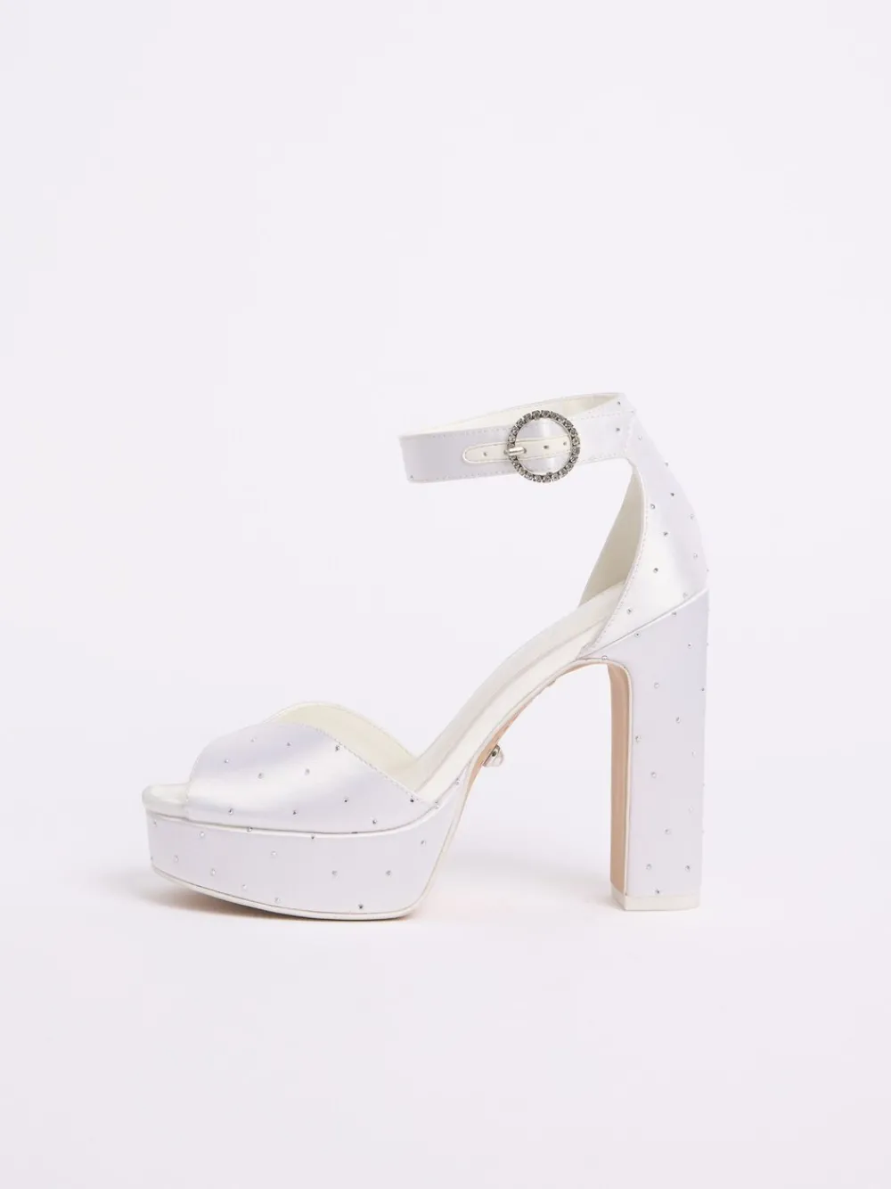 Elevate your bridal look with our beautifully timeless block heel sandals. Designed in-house, this shoe is crafted from satin with our bespoke Lipsy-branded sock, finished with subtle all-over diamanté detailing and a sleek ankle buckle for a modern, sparkling touch. Our wedding shoes are finished with comfortable padding to take you right from the start of your big day through to party the night away! Perfectly packaged in a specifically designed bridal shoe box. Hakhoogte 12 cm. Bovenwerk – textiel; voering en voetbed – overige materialen, zool – Andere materialen.