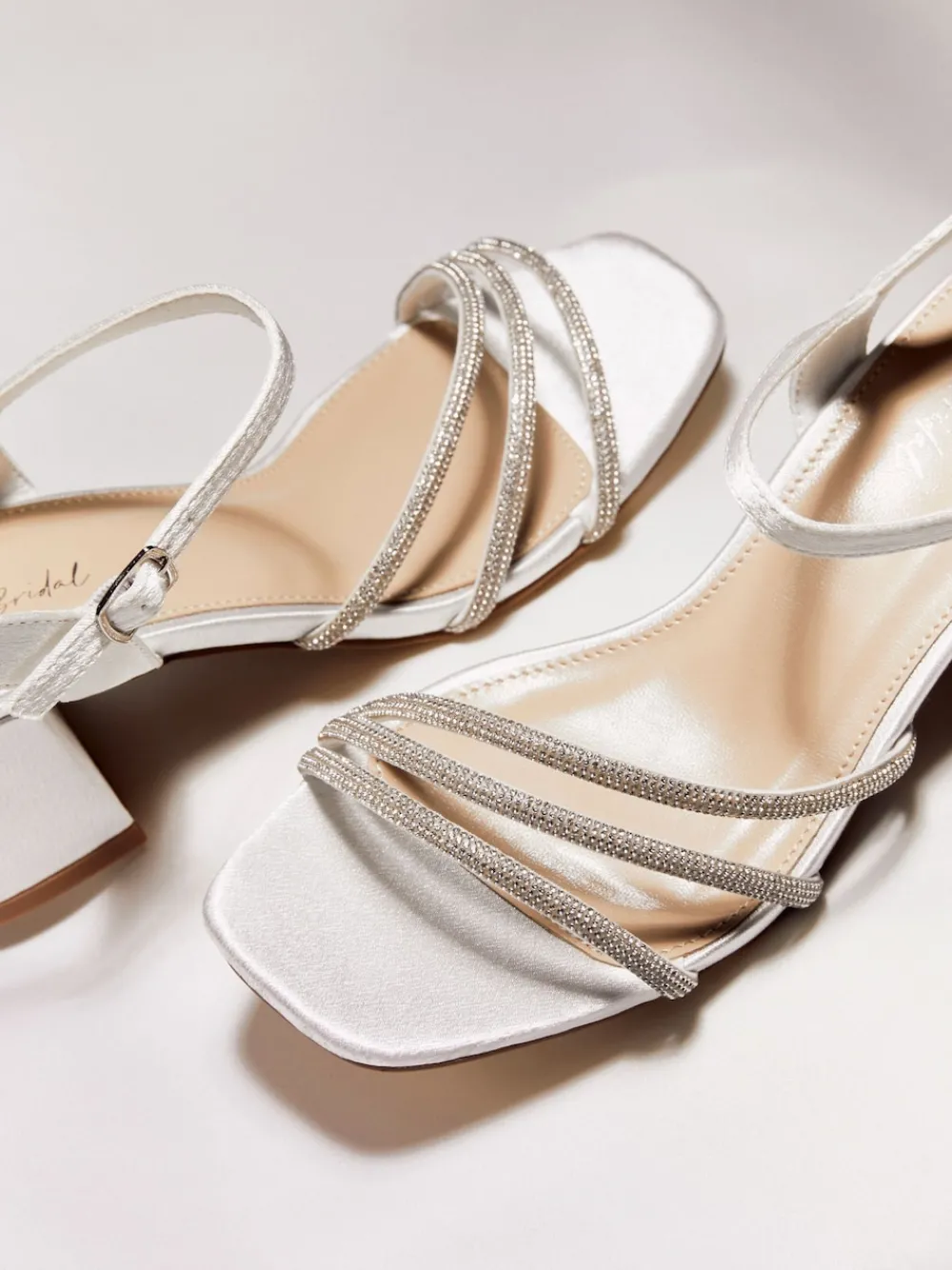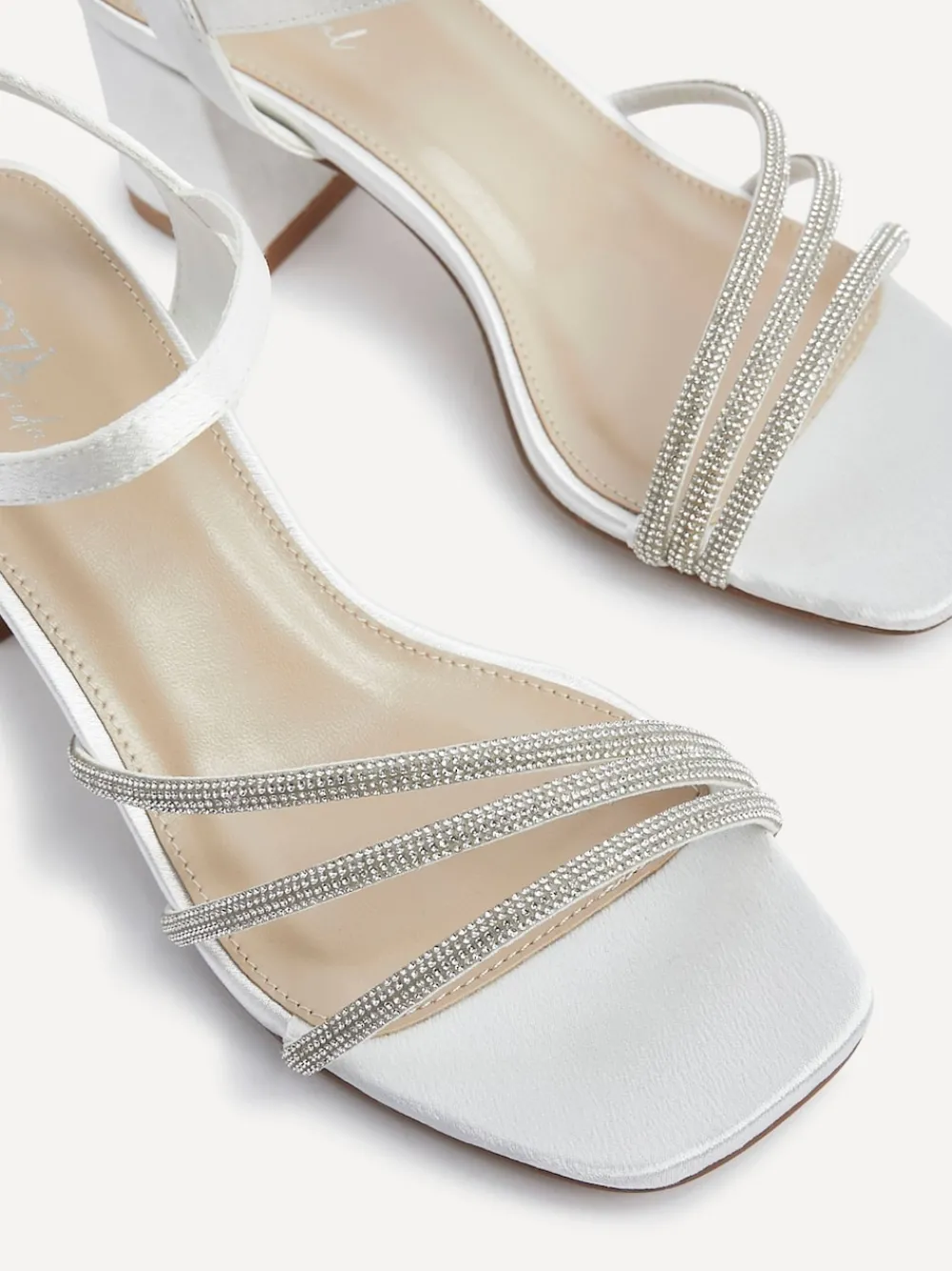 Make every step down the aisle unforgettable with our Mariah wide fit bridal heels. Designed for style and comfort, featuring three delicately embellished straps. The open toe and back adds a touch of modern elegance, while the stable block heel and plush cushioned insole provides all evening evening comfort. Hakhoogte 5,5 cm. Textiel.
