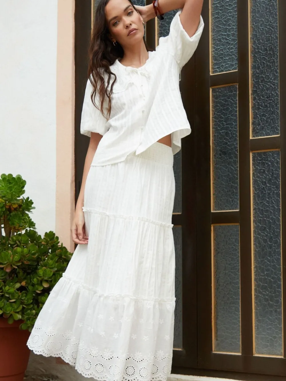 Broderie Tiered Pull On Midi Skirt*Another Sunday Hot