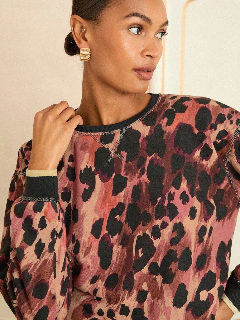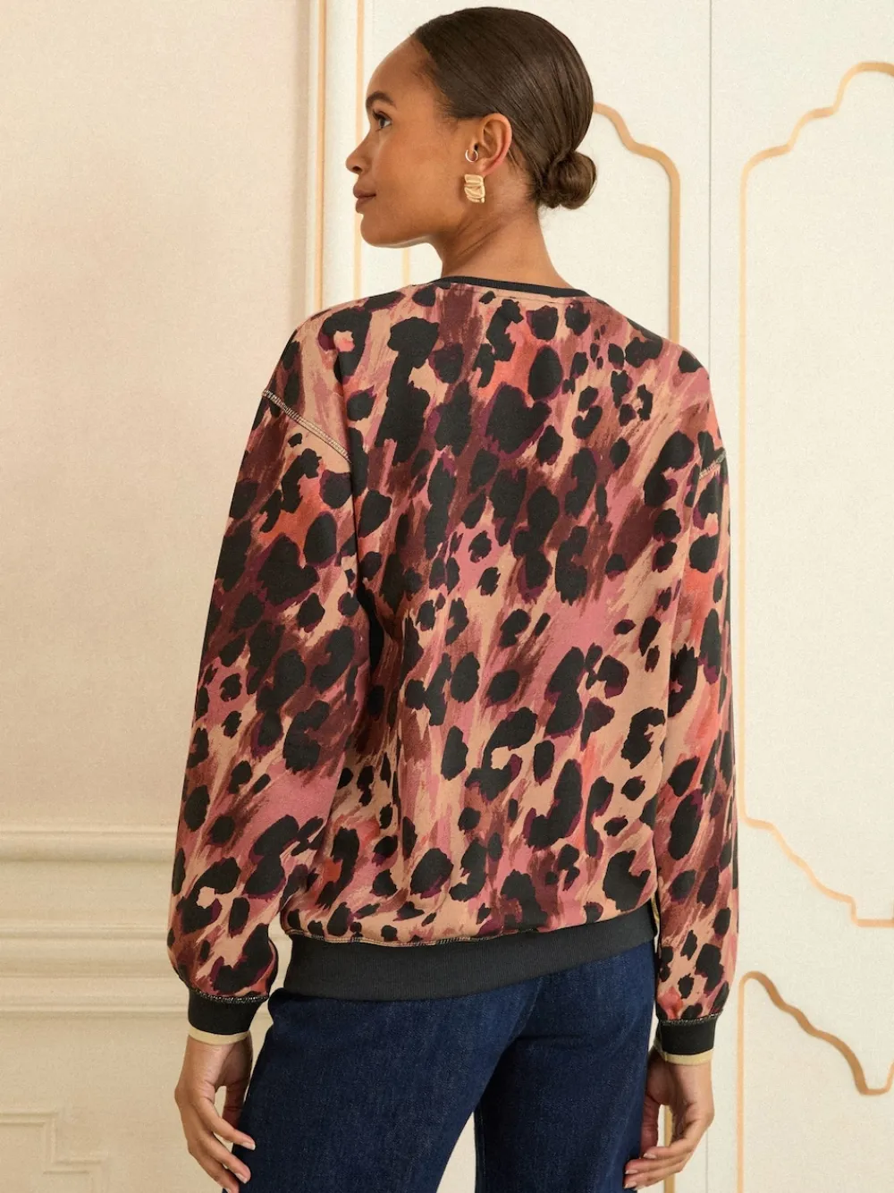 Embrace cosy comfort and bold style with the Love & Roses Brown Crew Neck Jersey Sweatshirt. This piece features a striking, multi-tonal leopard print in shades of brown, black and dusky pink, offering a chic twist on a classic motif. Crafted from a soft jersey fabric, it is designed to keep you warm and incredibly comfortable all day long. The traditional crew neck and relaxed fit make this top an easy and versatile addition to your casual wardrobe. Crew neck Leopard print Soft and comfortable 64% Polyester, 26% viscose, 10% katoen.