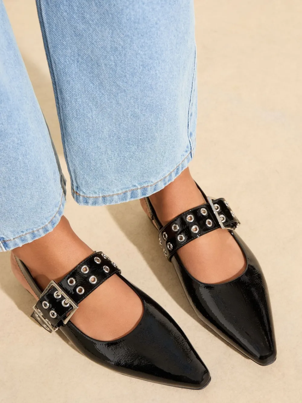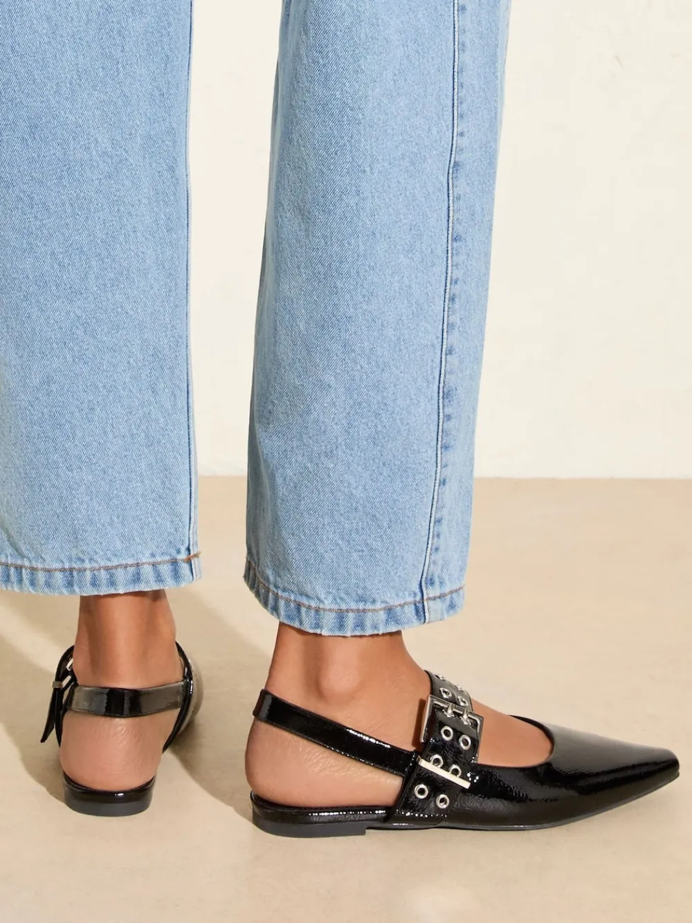 – Buckle Slingback Pointed Toe Faux Patent Leather Ballerina Shoes*Friends Like These Outlet