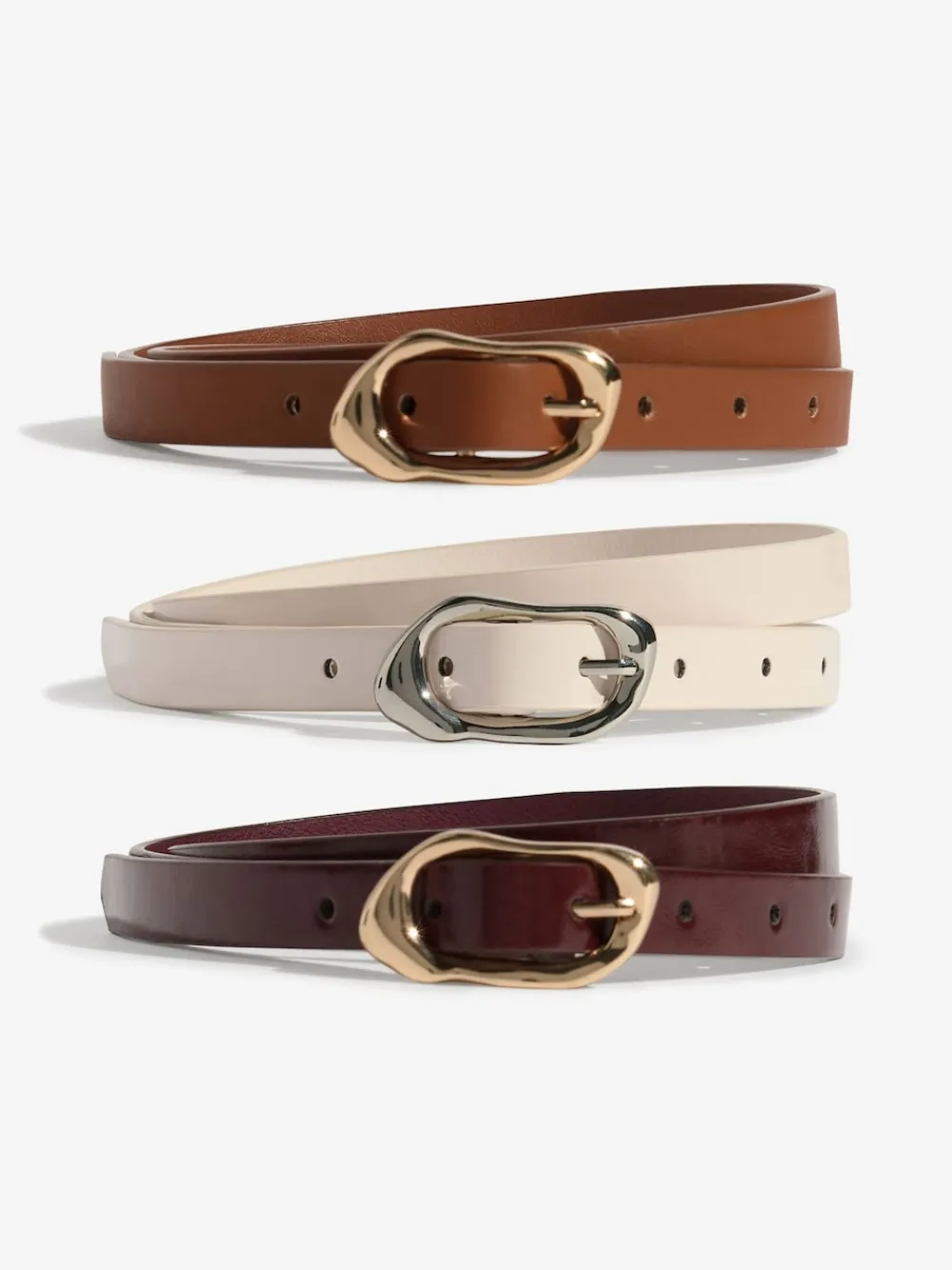 Burgundy, Tan & Cream – Skinny Belts 3 Pack*Lipsy Outlet