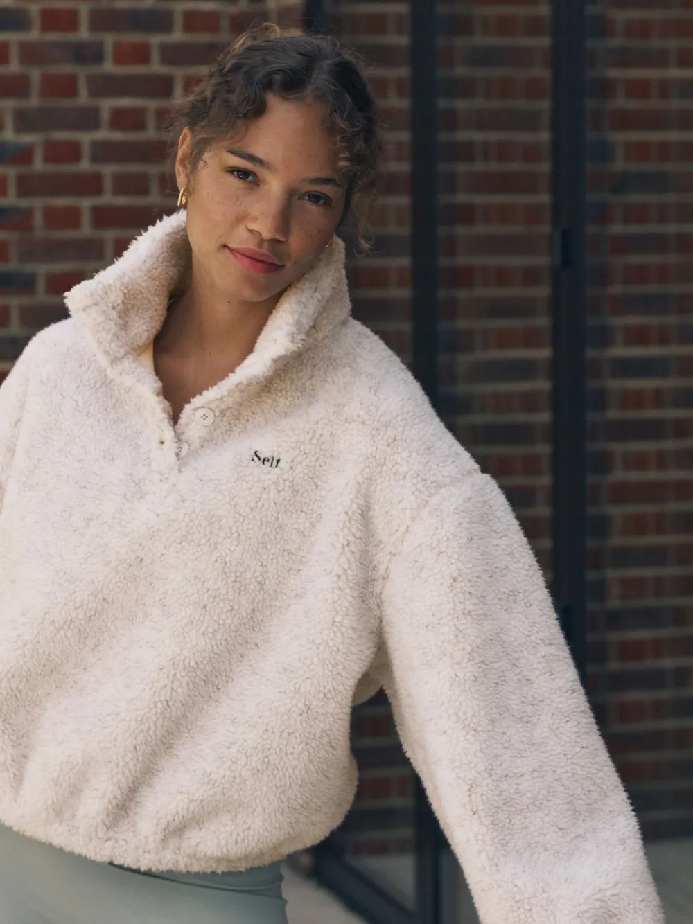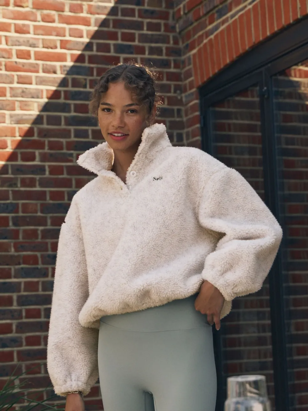 Wrap yourself in ultimate comfort with the self. Oatmeal Borg Buttons Neck Jumper. This piece is designed to be super soft and comfy, making it your go-to layer for cosy days. The plush borg fabric provides gentle warmth, while the high neck and buttons add an extra snug feel. A subtle self. embroidery to the chest gives a minimal, branded finish. With a relaxed, easy fit and a functional toggle detail to the hem for adjustable shaping, this jumper is the definition of comfortable style. Super soft and comfy High neck for extra warmth Buttons Neck Toggle detail to hem Machinewasbaar. 100% gerecycled polyester. Waarschuwing: weg houden bij vuur en vlammen.