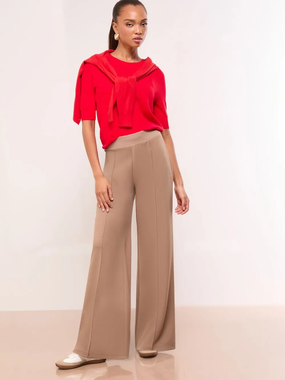 A pair of high-waisted trousers from Lipsy that features a wide-leg style Wide leg Flattering fit The model wears size 8 95% polyester, 5% elastaan.
