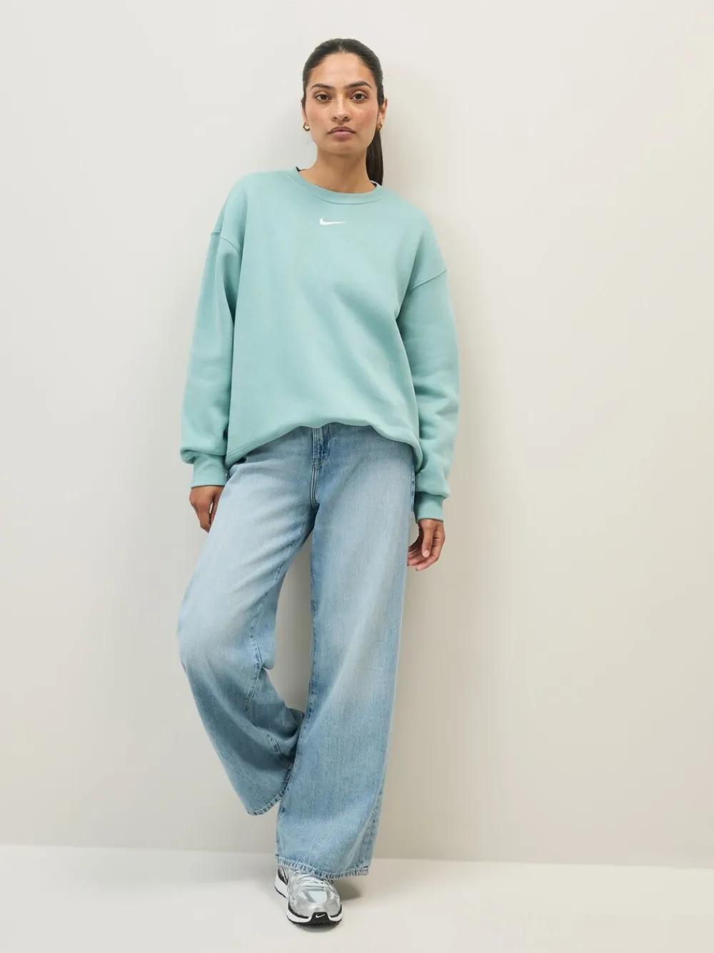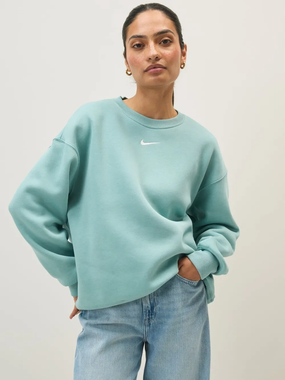 Nike Sportswear Phoenix Fleece Women’s Oversized Crew-Neck Sweatshirt. This cosy fleece sweatshirt feels extra soft on the inside and smooth on the outside Dropped shoulders and extra-wide ribbing enhance the oversized look 80% katoen, 20% polyester.