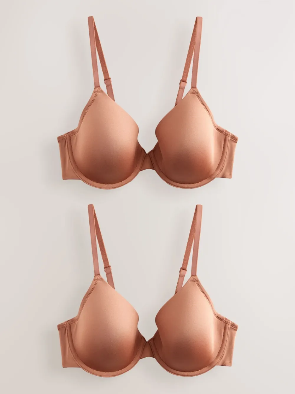 Feel amazing every day of the week with this two-pack lightly padded bra in caramel nude, made from soft microfibre designed to be silky smooth against your skin and offer a smooth line under clothes. The lightly padded, underwired fuller cup covers the breast and gives optimum support whilst maintaining a natural shape. Specially designed to suit all shapes and sizes, they’ve added a built-up wing for extra support and back smoothing. Pack of two Lightly padded Made from soft microfibre Underwired Fuller cup Built-up wing Machinewasbaar. 2 x beha van 62% nylon, 25% polyester, 13% elastaan. CoppaFeel! is de enige op jongeren gerichte borstkankerbewustzijnsorganisatie in het VK met als missie om elke jongere zijn of haar borst te laten controleren. Next is er trots op hun bra-hijackcampagne te steunen.