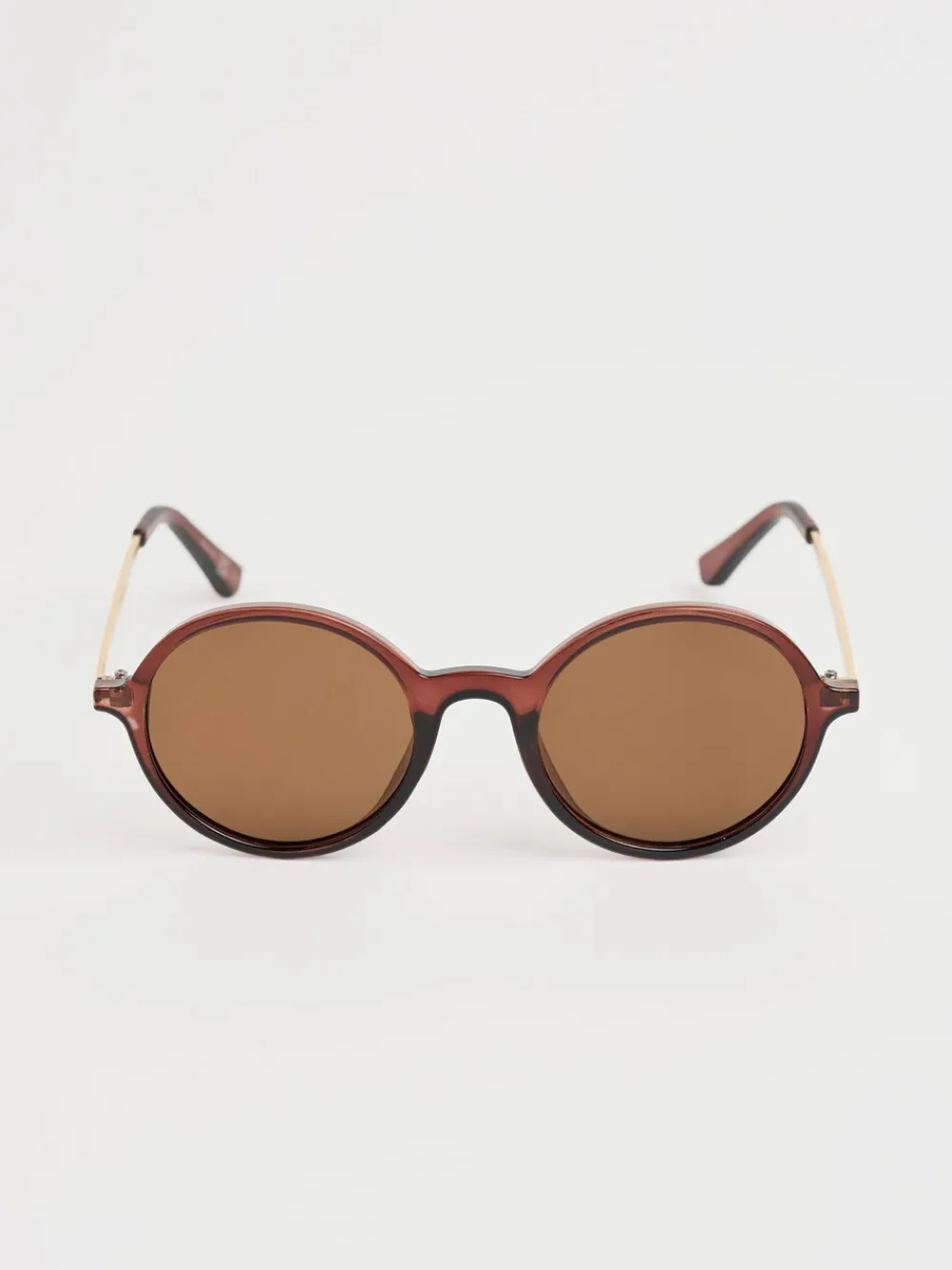 Retro-inspired round sunglasses in a coastal colours, made from plastic with metal arms. 70% polycarbonaat, 30% koper.