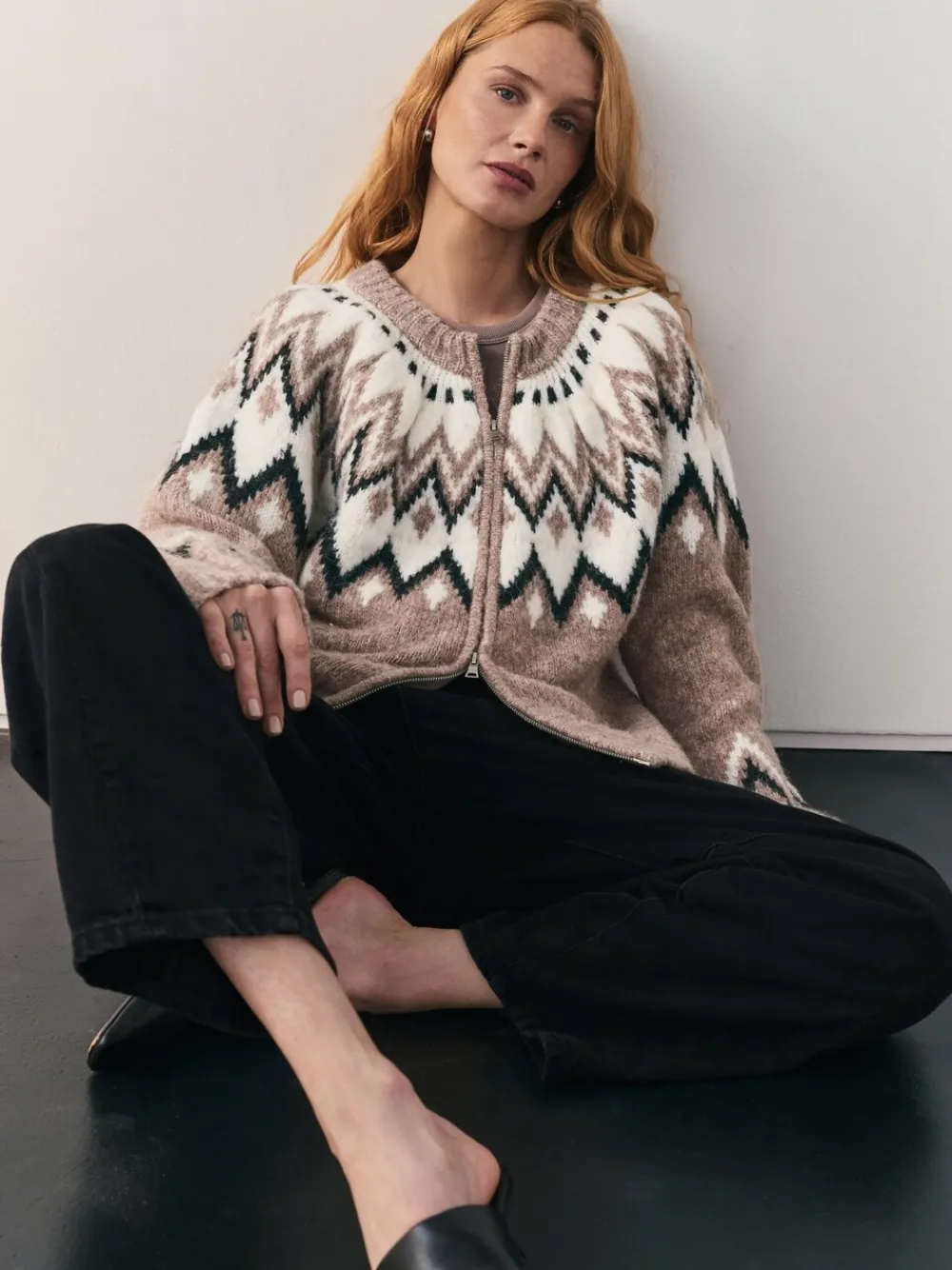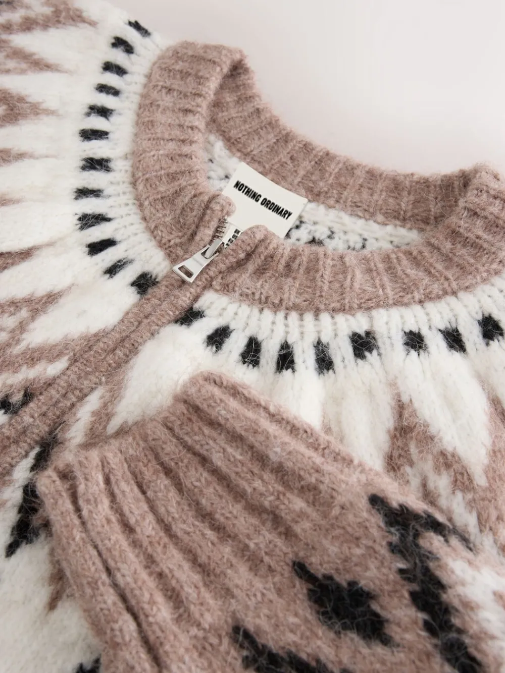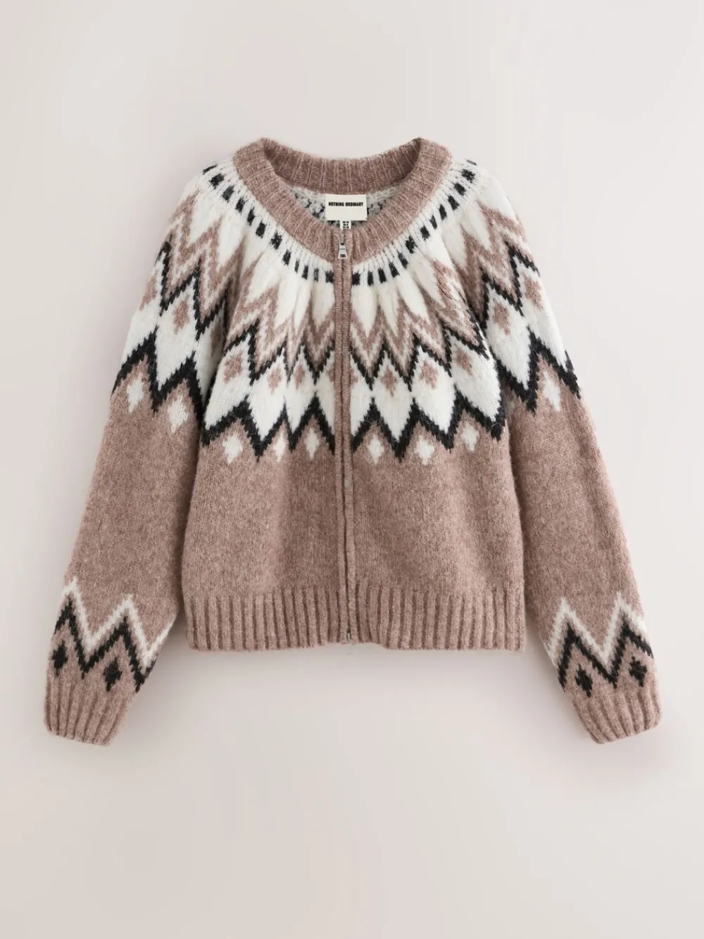 Elevate your casual wear with the Nothing Ordinary Taupe Fairisle Pattern Knit Zip Through Cardigan. This piece beautifully encapsulates our brand’s mission to elevate wardrobe favourites with thoughtful design, blending classic charm with contemporary comfort. The striking Fairisle pattern, with its sophisticated blend of taupe, cream, and black, makes a subtle yet stylish statement. Designed with a convenient zip-through front and long sleeves, this cardigan offers both versatility and warmth. Crafted from a super-soft knit with alpaca and wool, it promises unparalleled comfort, making it a perfect staple for cool days. Pair it with dark denim or tailored trousers for a look that is both relaxed and effortlessly chic. Fairisle pattern Zip through with silver zip Ribbed hem and cuffs Soft, cosy knit with Alpaca and Wool 42% Acrylic, 31% Nylon, 21% Polyester, 4% Alpaca, 2% Wool.