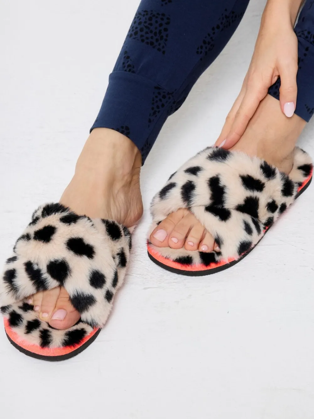 Cheetah & Lightning Bolt Faux Fur Cross Over Slippers*SCAMP & DUDE Hot