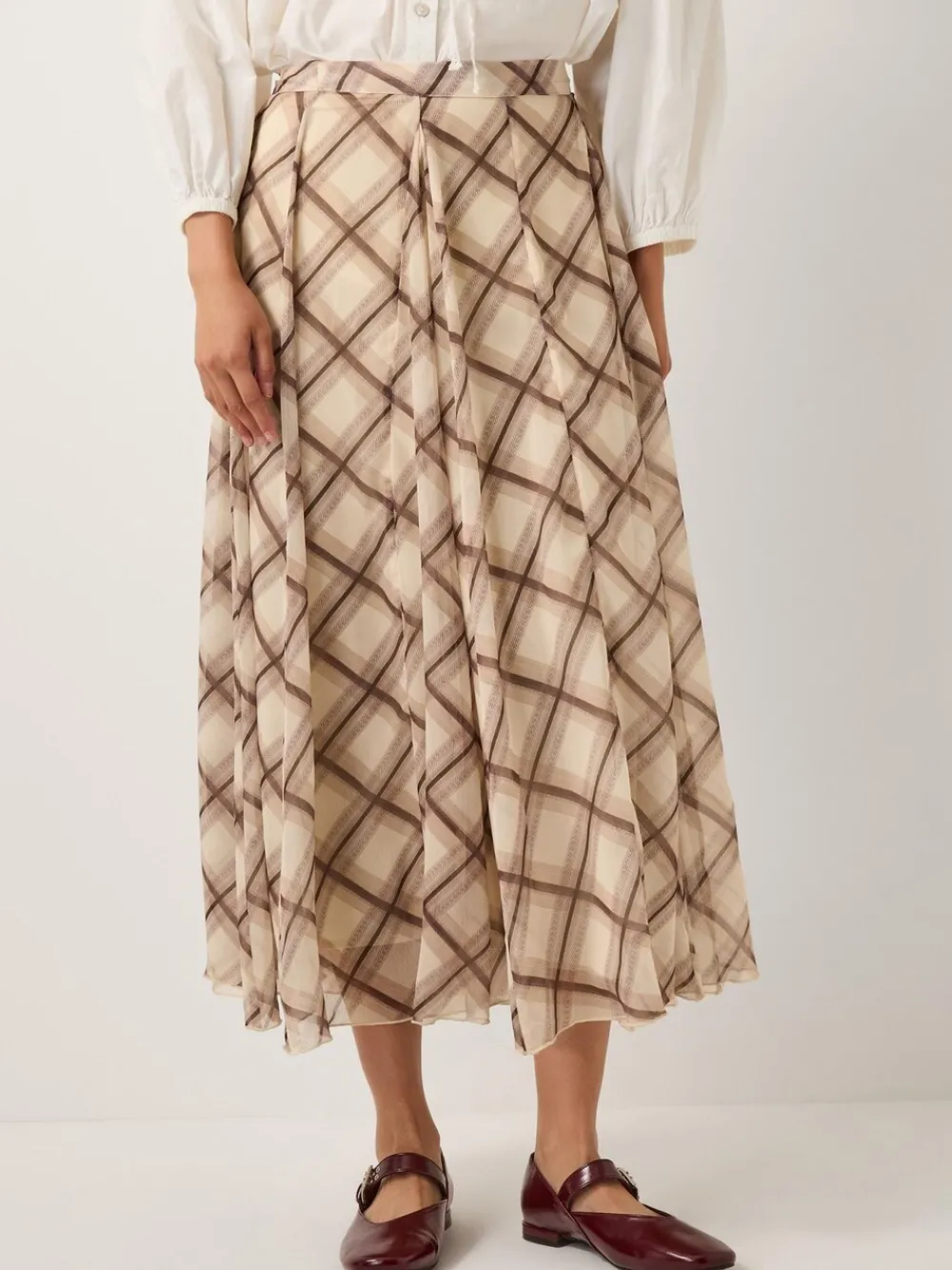 So checked out. Tailored with flouncy pleats in a lightweight fabric so every stride makes a statement, this skirt features a bold checkered pattern in timeless, neutral tones. For a look you can wear all Autumn long, style with a chunky knit and moto boots. Machinewasbaar. Hoofdbestanddeel 100% polyester. Voering 100% polyester.