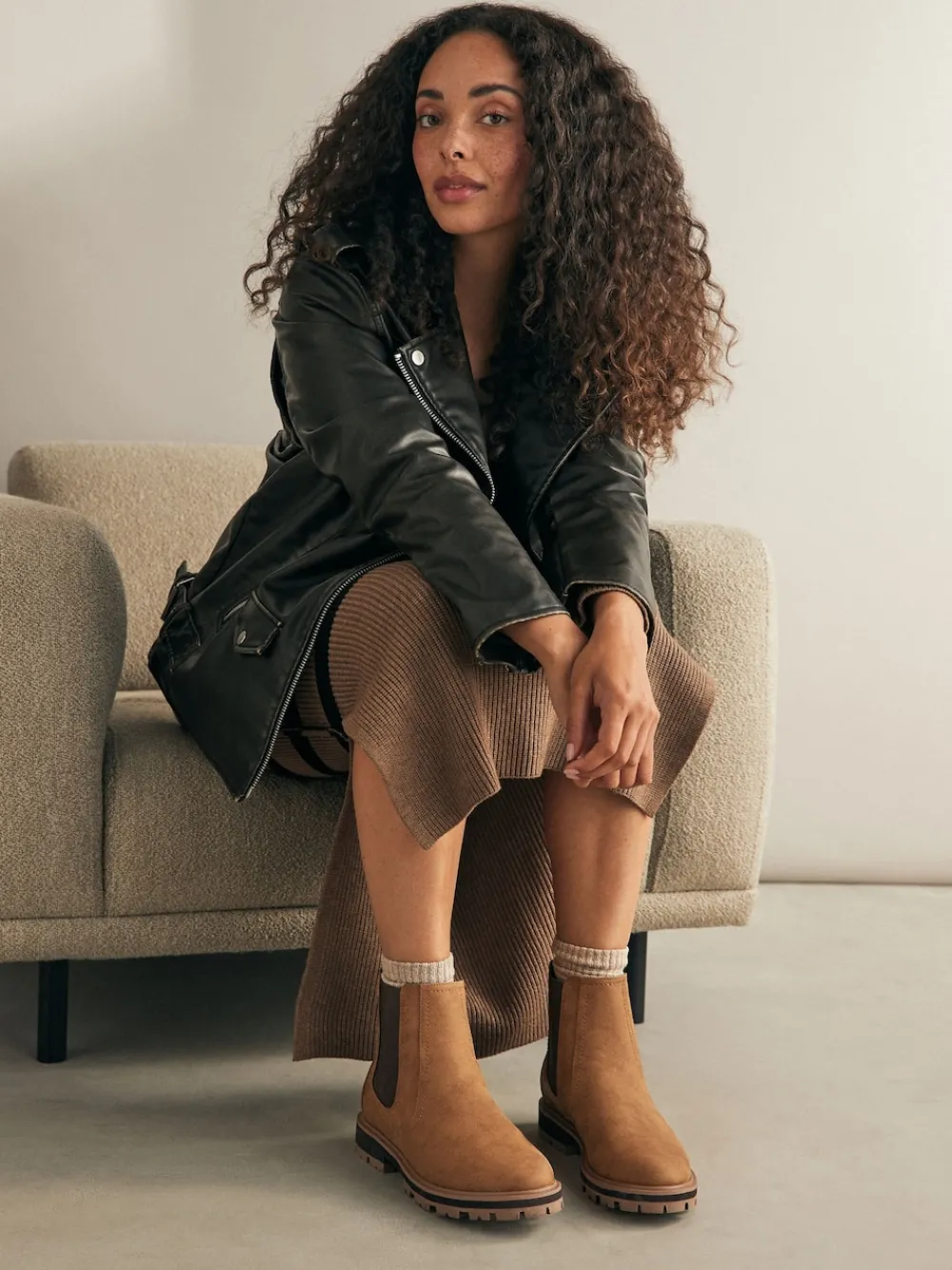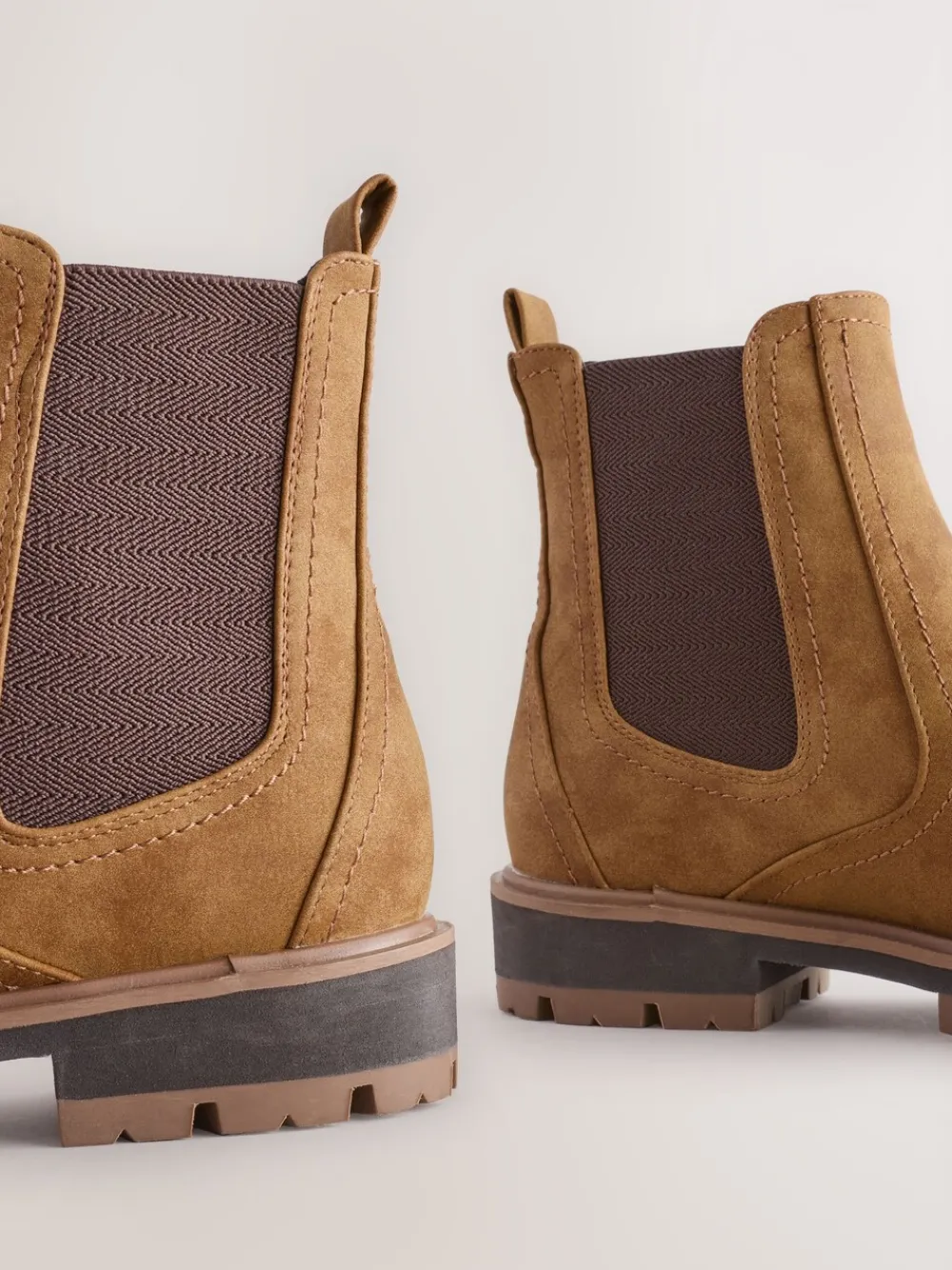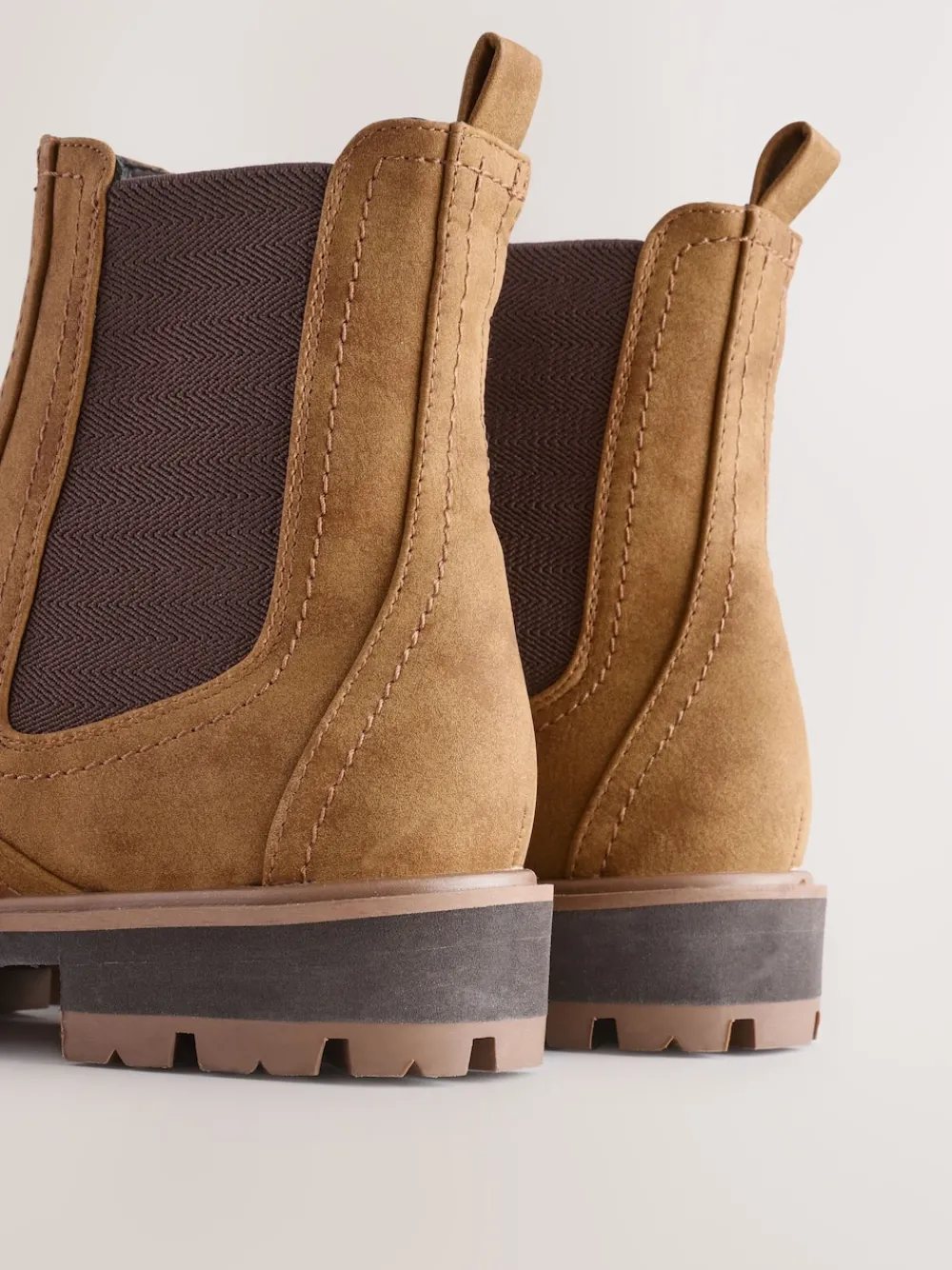Chelsea boots raken nooit uit de mode. Dit stijlvolle paar is de perfecte optie voor koud weer. De bovenkant is gemaakt van glad imitatiesuède en heeft elastische zijpanelen, zodat u ze gemakkelijk aan en uit kunt trekken. Het Forever Comfort ® voetbed met demping zorgt ervoor dat u de hele dag optimaal loopt, afgewerkt met een duurzame noppenzool. Normale pasvorm Bovenwerk van imitatiesuède Elastische zijpanelen Forever Comfort ® voetbed Noppenzool Bovenwerk – overige materialen, textiel; voering en voetbed – textiel, overige materialen; zool – Andere materialen. Schoenen en korte enkellaarzen met wijde pasvorm bieden de hele voet extra breedte. Lange laarzen met wijde pasvorm bieden de hele voet en bij de kuit extra breedte.