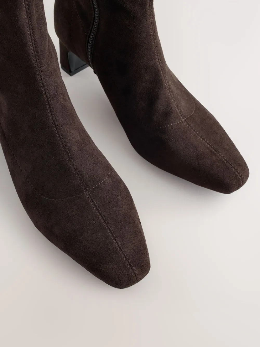 Perfect for smart casual styling, these chocolate brown sock boots offer a sleek and streamlined silhouette. The soft, stretchy upper and comfortable block heel create a chic foundation for any outfit, effortlessly combining comfort and on-trend appeal Sock boots Chisel toe Stretchy upper Side zip fastening Block heel Forever Comfort® cushioned footbed Hakhoogte 4,5 cm. Bovenwerk – textiel; voering en voetbed – textiel, overige materialen; zool – Andere materialen.