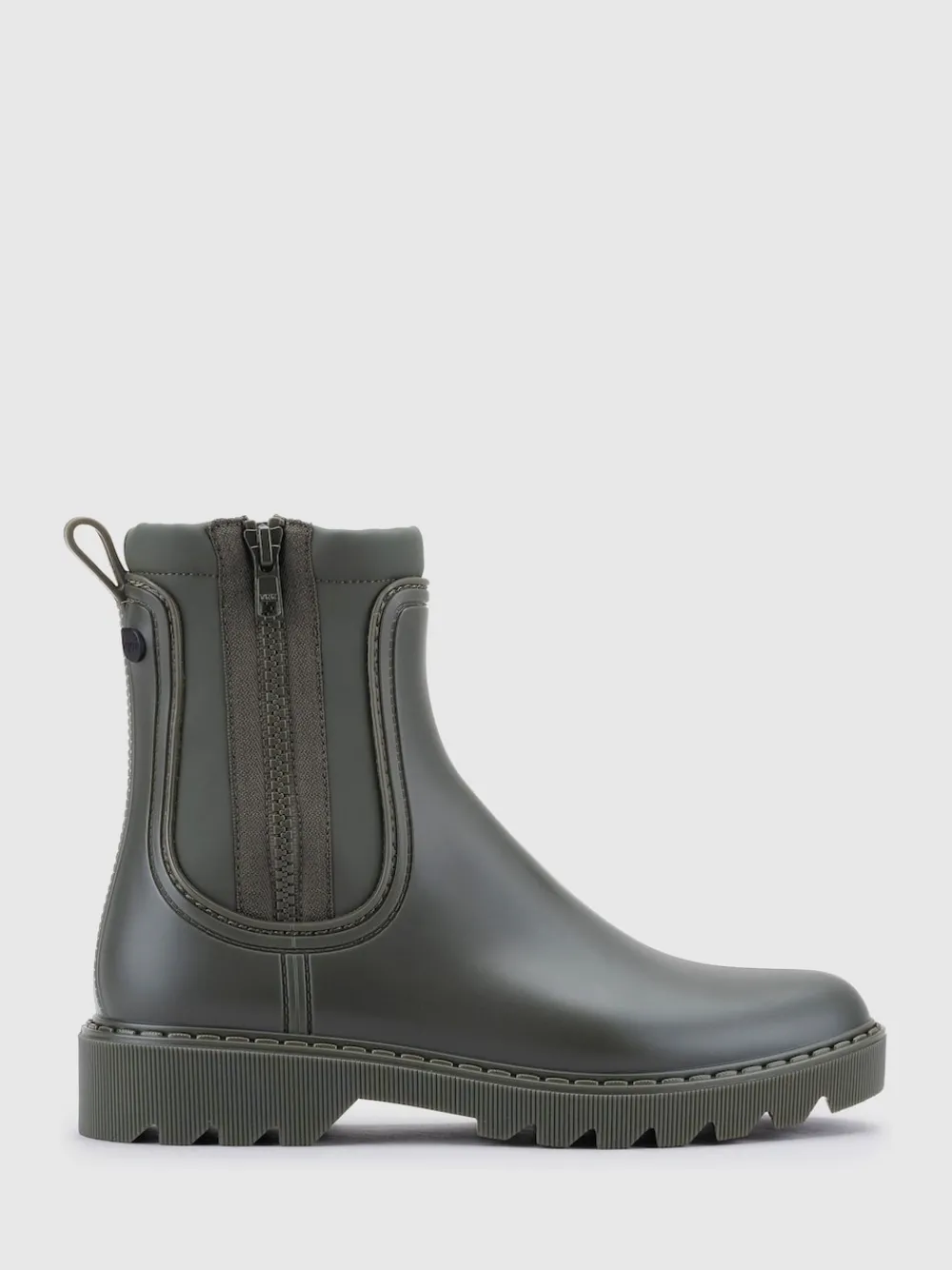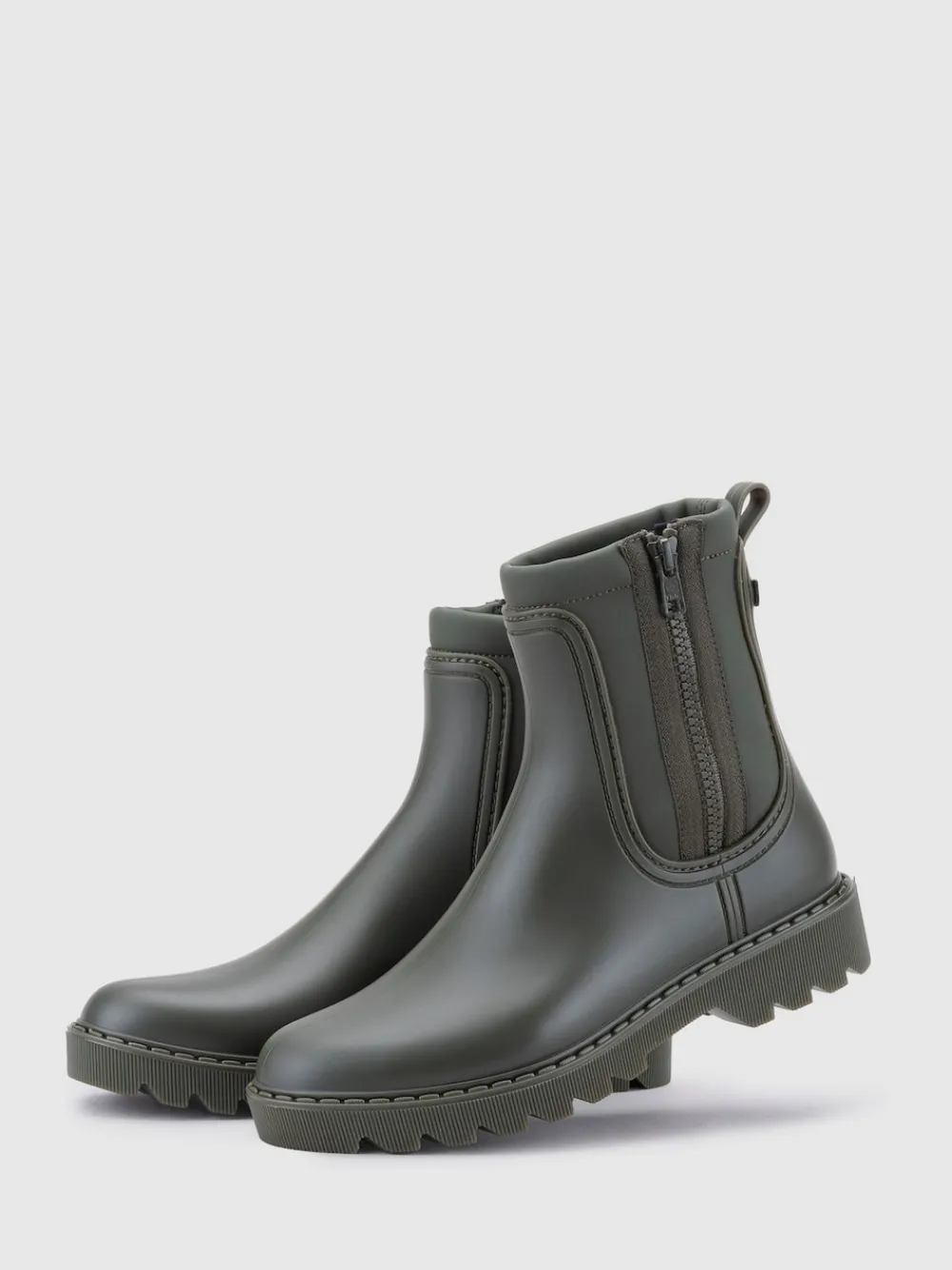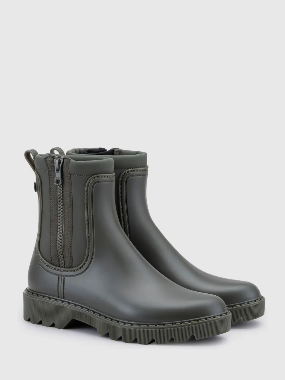 Deze enkellaarzen met matte afwerking zijn de perfecte combinatie van stijl en functionaliteit voor dagelijks gebruik. De uitneembare binnenzolen bieden extra comfort en ondersteuning, terwijl de aantreklus en rits het aan- en uittrekken vergemakkelijken. Of je nu door plassen ploetert of op een regenachtige dag boodschappen doet, deze Laarzen zijn ideaal voor jou. Bovenwerk – textiel. Voering en voetbed – overige materialen, zool – Andere materialen.