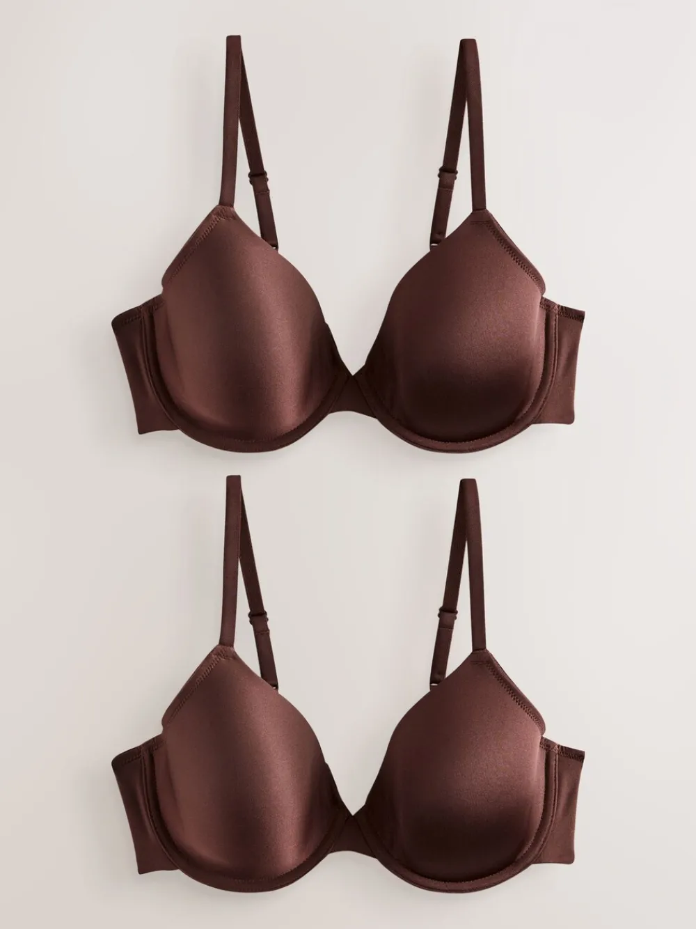 Feel amazing every day of the week with this two-pack chocolate nude lightly padded bra, made from soft microfibre designed to be silky smooth against your skin and offer a smooth line under clothes. The lightly padded, underwired fuller cup covers the breast and gives optimum support whilst maintaining a natural shape. Specially designed to suit all shapes and sizes, they’ve added a built-up wing for extra support and back smoothing. Pack of two Lightly padded Made from soft microfibre Underwired Fuller cup Built-up wing Machinewasbaar. 2 x beha van 62% nylon, 25% polyester, 13% elastaan. CoppaFeel! is de enige op jongeren gerichte borstkankerbewustzijnsorganisatie in het VK met als missie om elke jongere zijn of haar borst te laten controleren. Next is er trots op hun bra-hijackcampagne te steunen.