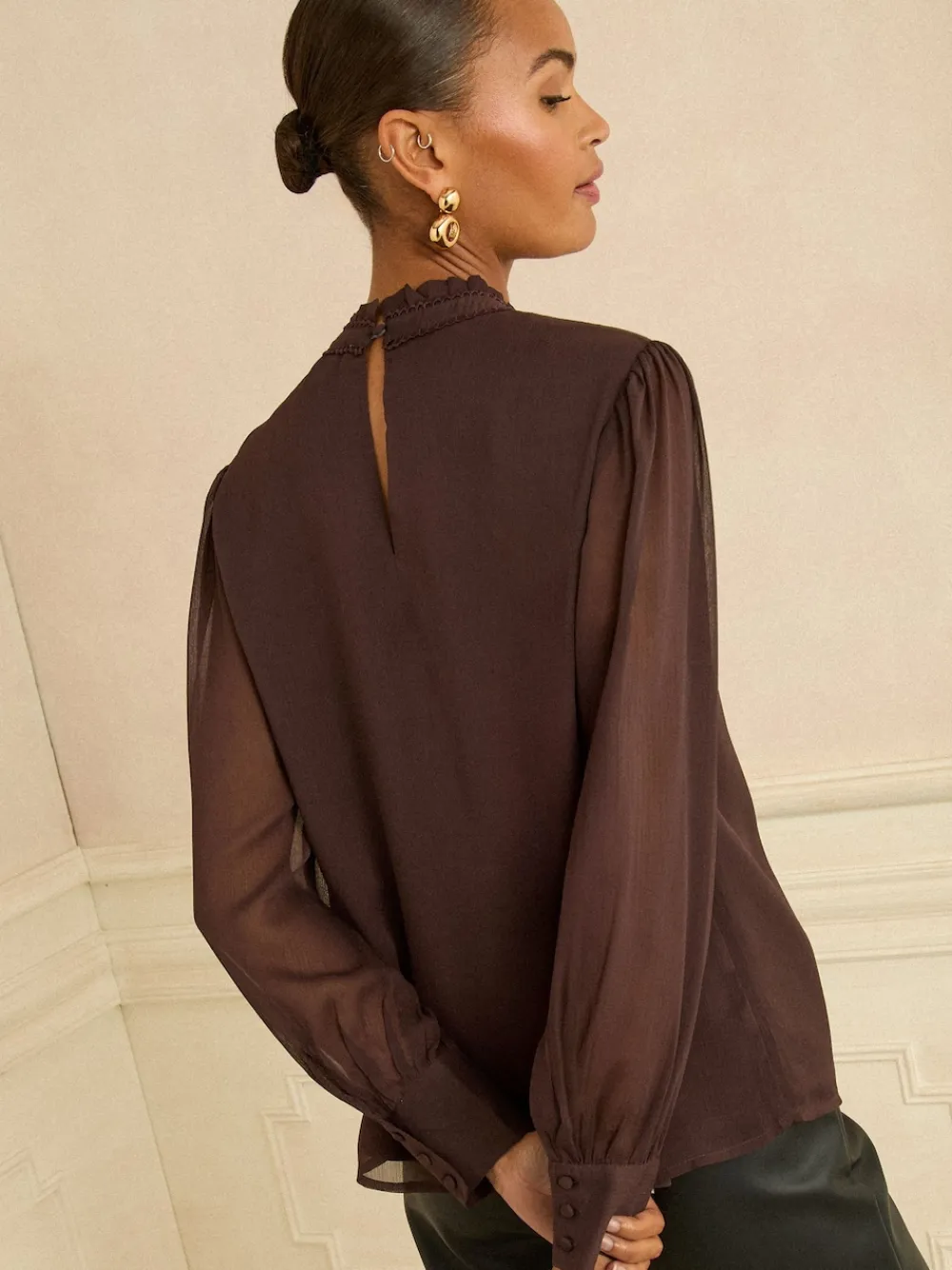 Chocoladebruin – blouse met lange mouwen en striksluiting*Love & Roses Clearance