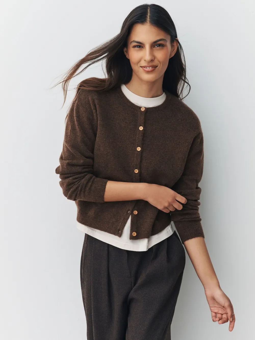Layer up in timeless style with this knitted cardigan. Its soft, plain fabric and classic crew neck make it an effortless essential. The button-through front is finished with charming wooden buttons for a subtle, natural detail. Wooden buttons Button through fastening Knitted Plain With wool. Machinewasbaar. 52% gerecycled polyester, 37% Acryl, 8% wol, 3% elastaan. Onze tall collectie is ontworpen om te passen bij vrouwen van 5’10” en langer. Dit is verhoudingsgewijs vergroot door het lichaam, de benen en de mouwen om de perfecte pasvorm te bereiken. Verkrijgbaar in maat 8-20.